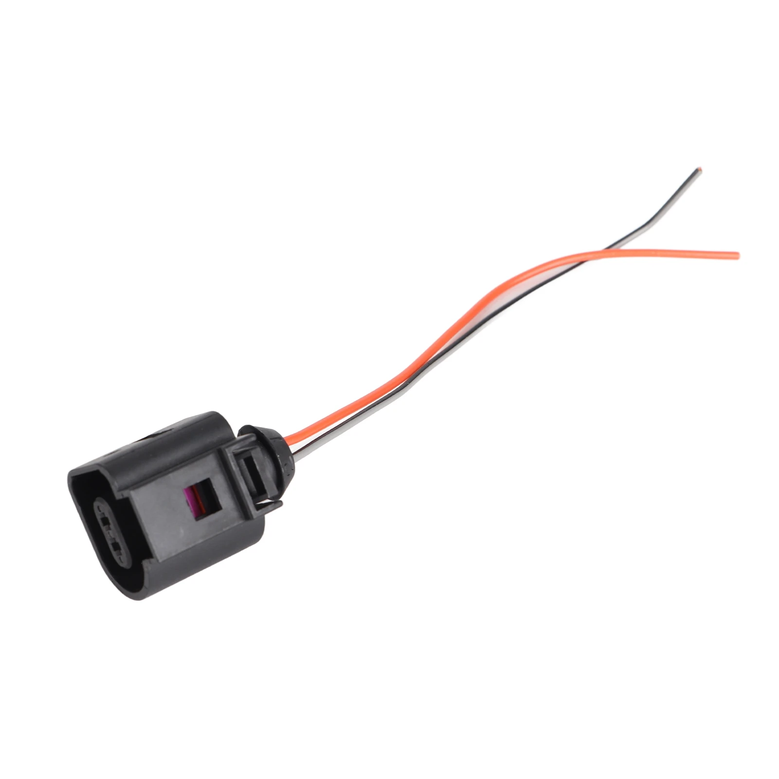 - Electrical connection consists of a small rectangular socket with an orange release tab and two wires (black and orange), simplifying wiring for quick setup.