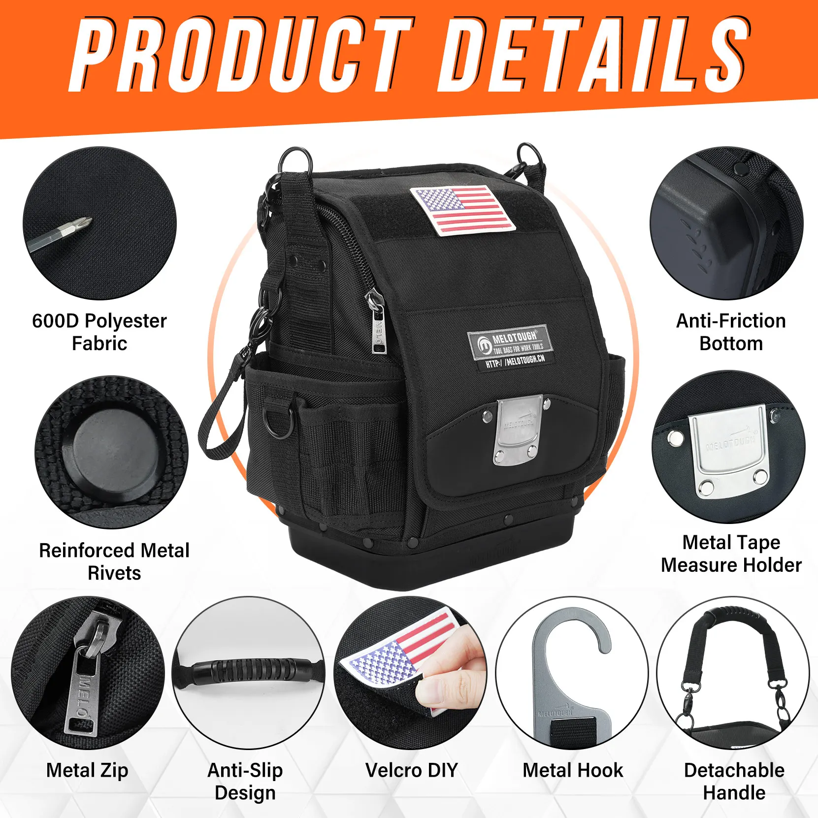 Make your daily tasks easier with this expertly designed electrician tool bag. Its thoughtful layout and durable materials guarantee years of dependable service. Imagine confidently accessing your tools quickly and efficiently, knowing everything has its place. Whether you're on a busy job site or tackling various projects, this bag adapts seamlessly to your needs. Investing in this reliable, professional-grade tool organizer means less time searching and more time working. Elevate your tool management today and experience the convenience of having all your essentials perfectly organized and accessible whenever you need them.