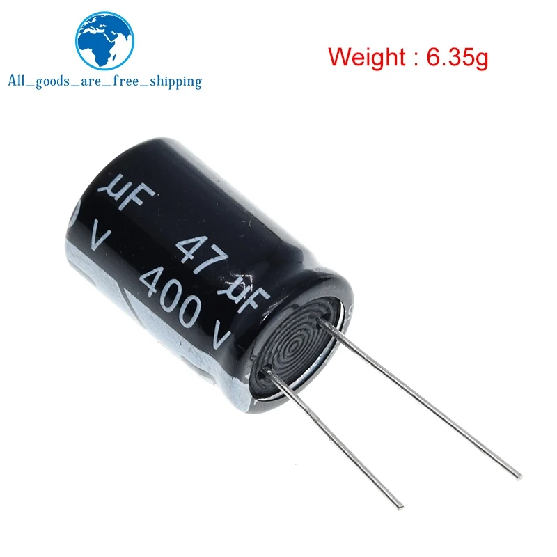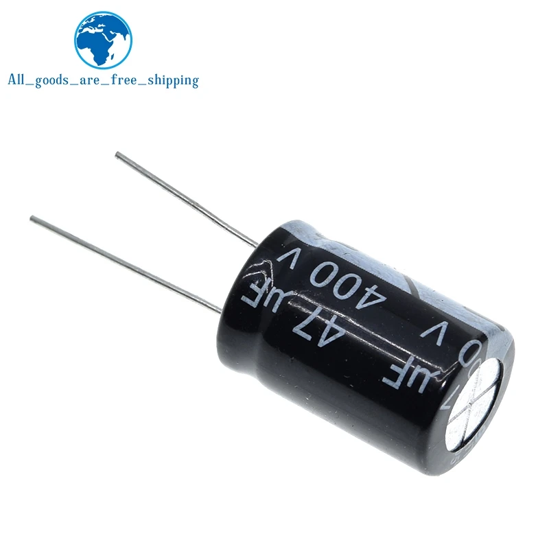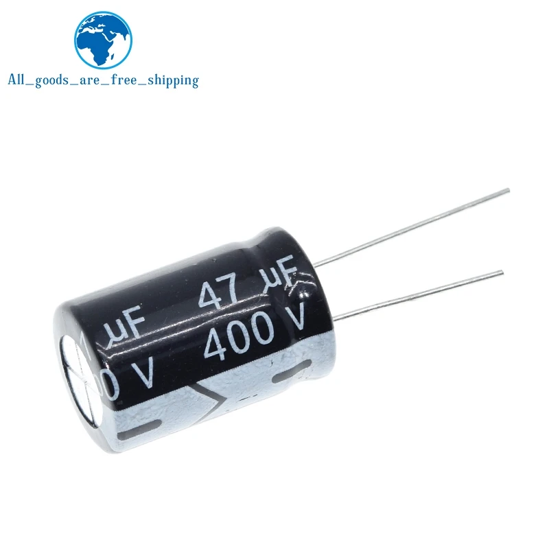 Upgrade your electronic projects with this set of 10 high-quality electrolytic capacitors, each rated at 400V and 47μF capacitance, with a temperature tolerance of 105°C. Featuring a compact 16x25mm size, these capacitors are ideal for switch and sensor modules, providing reliable performance and durability. Their sleek black cylindrical design with a smooth, glossy finish makes them not only functional but also easy to incorporate into various electronic assemblies. Perfect for replacing or customizing circuit components, these new capacitors are built to ensure stable operation in demanding conditions, helping you achieve precise and consistent results in your electronic applications.