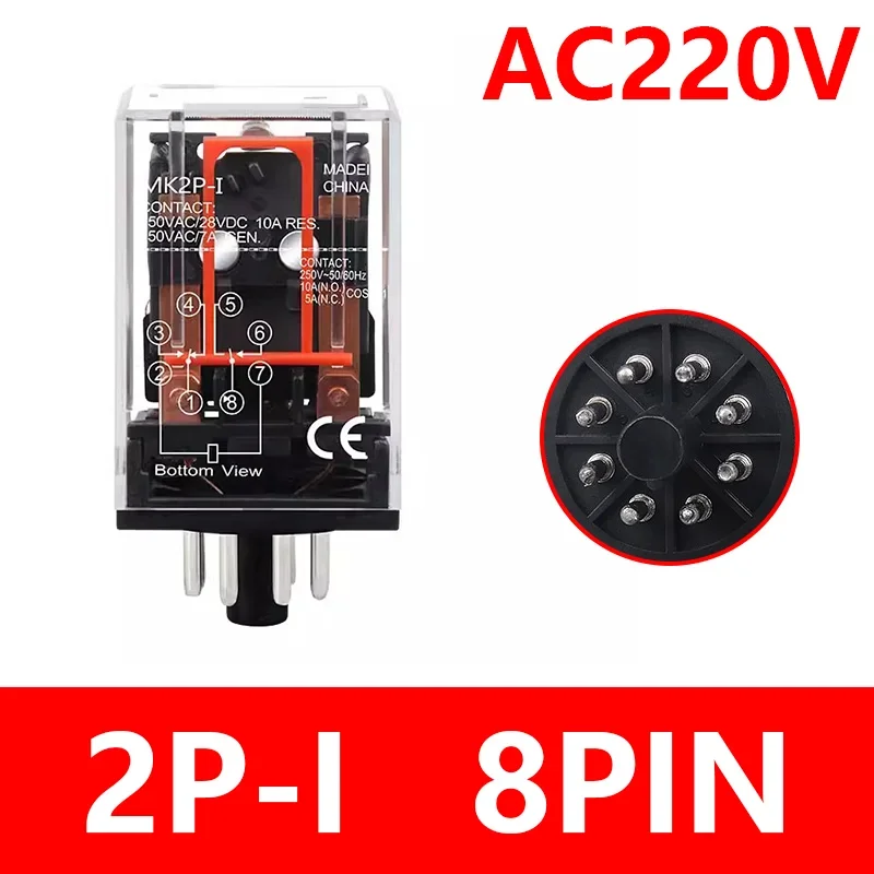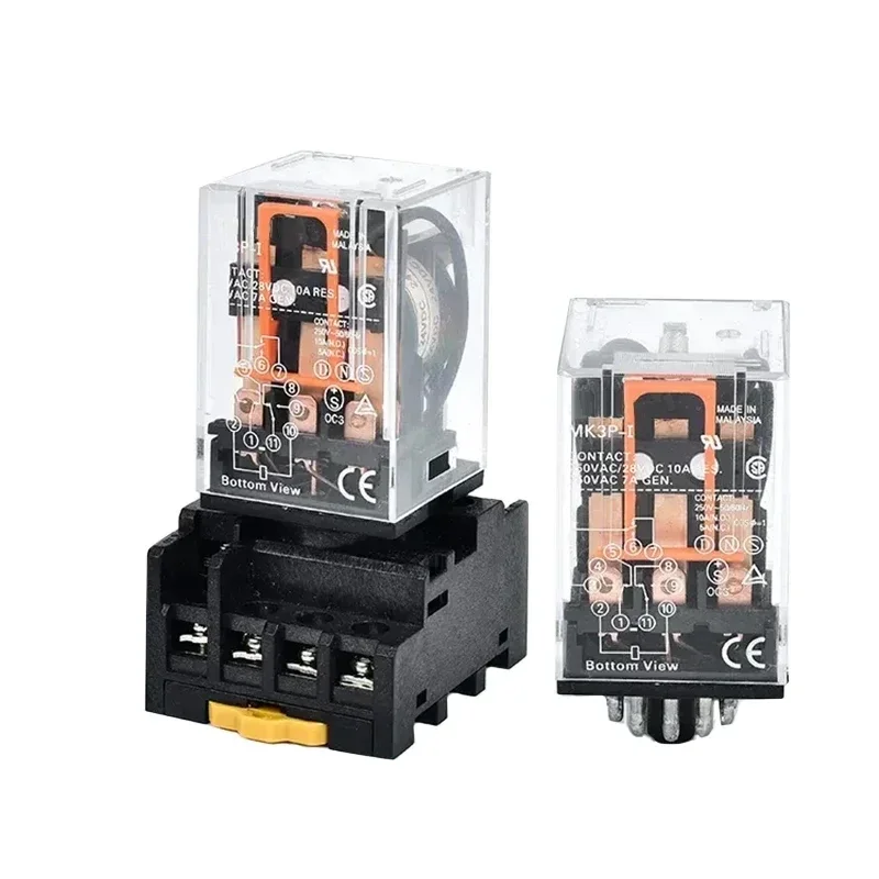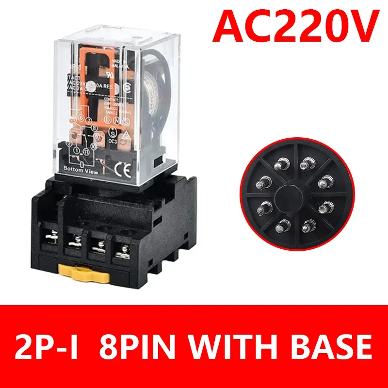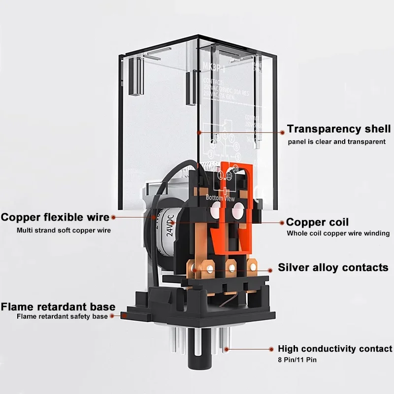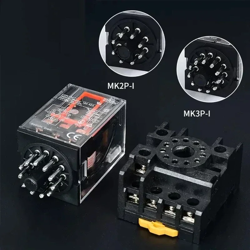 - Equipped with an 8-pin base for 2P-I and 3P-I models, supporting easy mounting and wiring connections, complete with copper contacts for dependable electrical conductivity.
