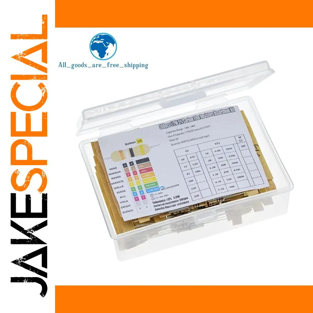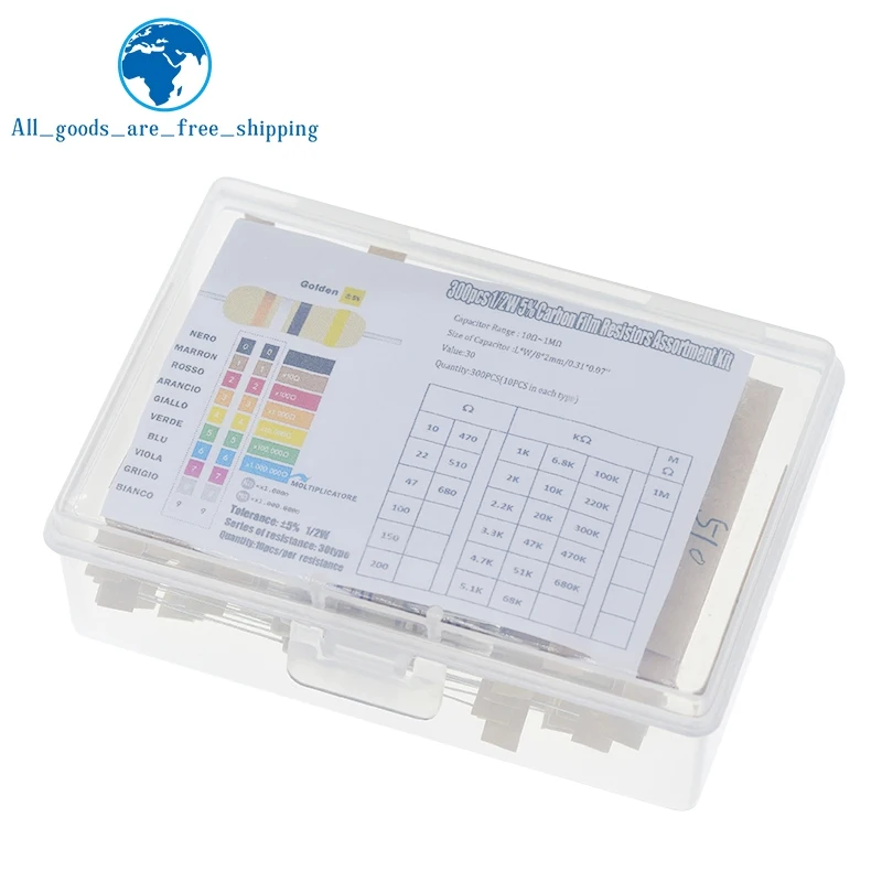 - Includes 300 metal resistors covering 30 specified values from 10Ω to 1MΩ, ideal for multiple electronic applications requiring diverse resistance options.