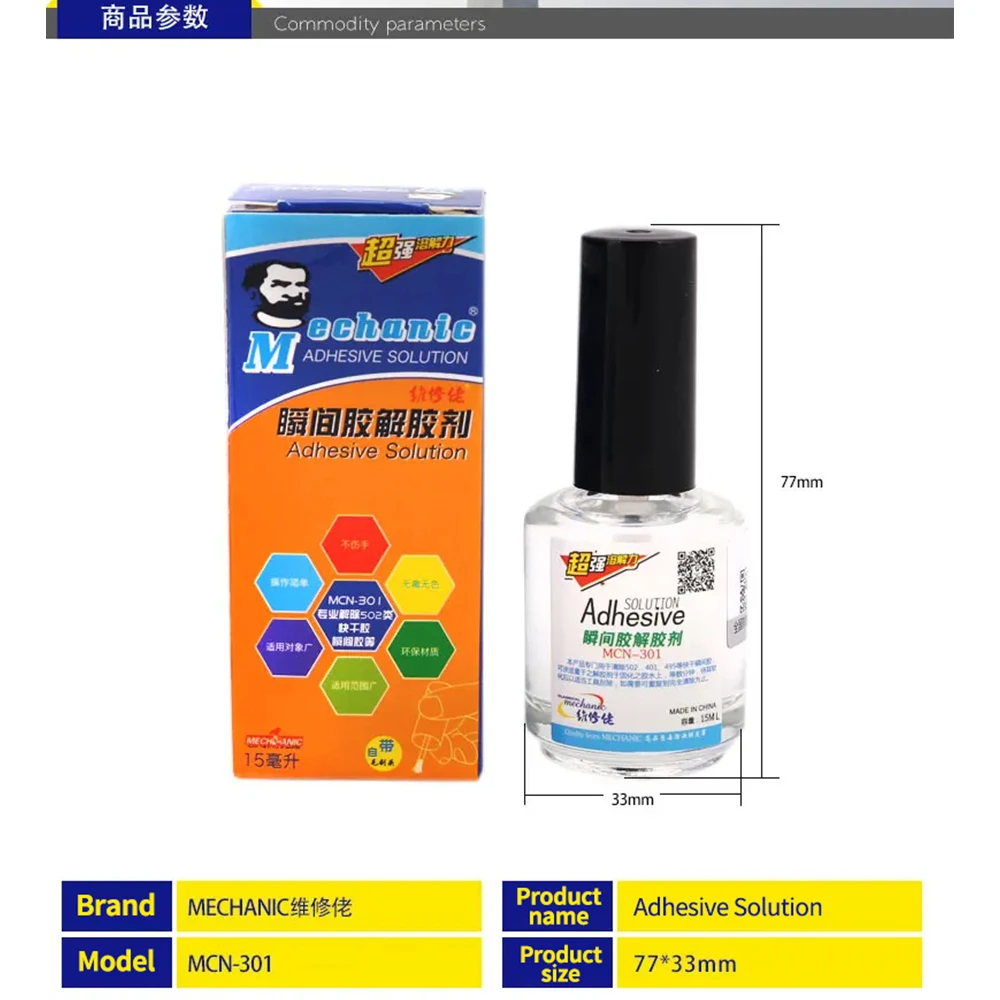 - Specially formulated for removing cured instant glue on electronic components, including mobile phones, motherboards, CPUs, and PCBs, without causing damage or residual adhesive.