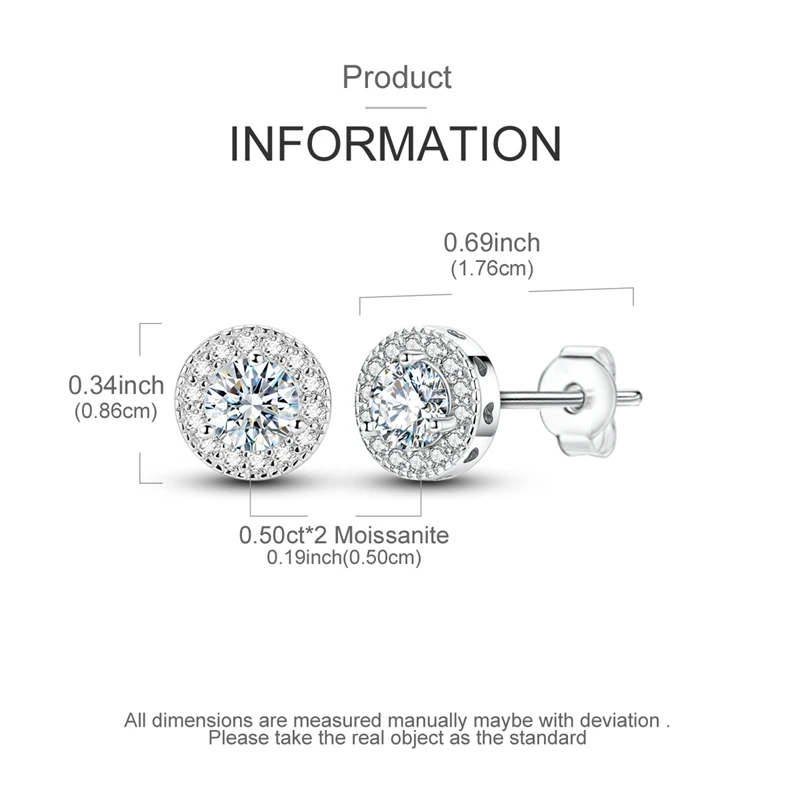 - Features two sparkling 0.5-carat round-cut moissanite stones, certified by GDTC, providing eye-catching brilliance and mimicry of genuine diamonds.