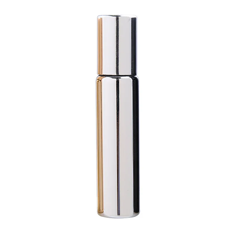 Imagine effortlessly carrying your favorite essential oils, skincare serums, or cosmetic samples in a sleek, stylish container. This 10ml refillable roll-on bottle combines practicality with modern elegance, making it perfect for on-the-go use. Crafted from UV-protected glass, it safeguards contents from harmful rays, preserving their potency. The anodized aluminum oxide caps come in three sophisticated finishes: gold, silver, and black, adding a touch of luxury. Its compact size of 77x17mm makes it easy to slip into your purse or pocket, ensuring your beauty essentials are always within reach. The stainless steel roller ball guarantees smooth, leak-proof application, while the tight-fitting aluminum alloy cap prevents spills. Elevate your daily routine with this functional, yet refined travel accessory.