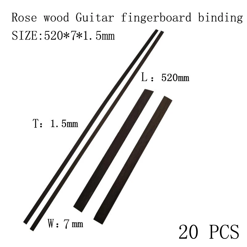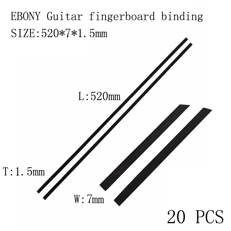 - Each strip measures 520mm long, 7mm wide, and 1.5mm thick, fitting perfectly as fingerboard edge banding for guitars, ukuleles, and mandolins.