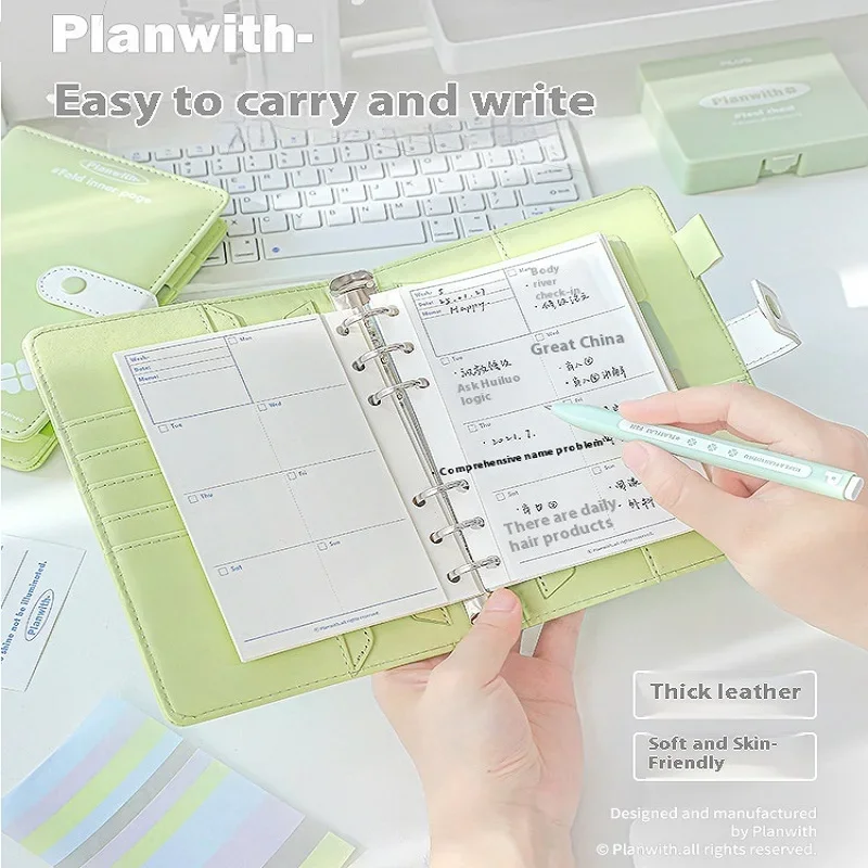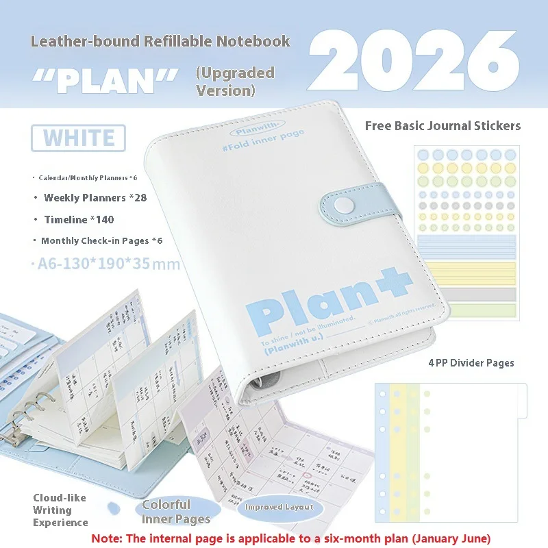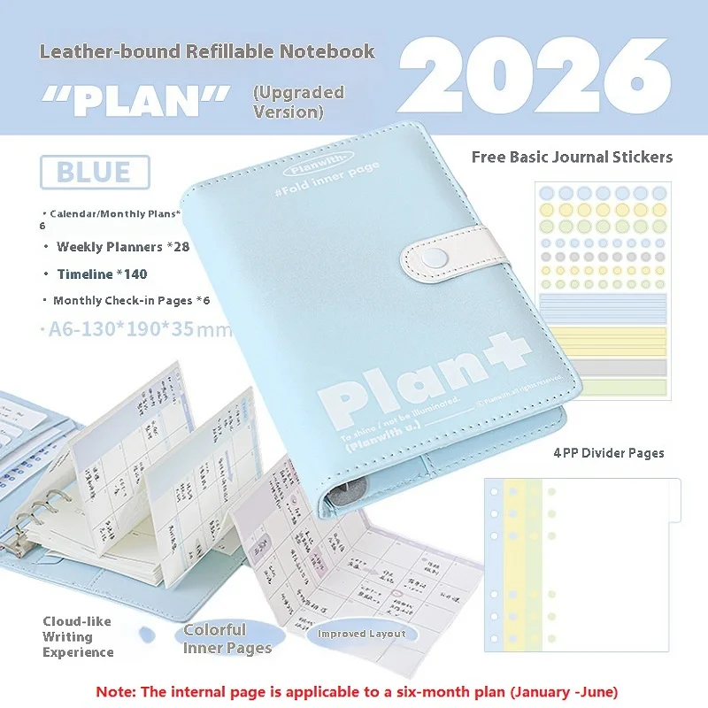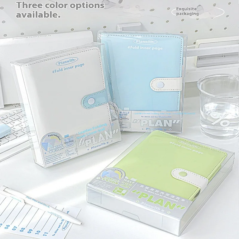 Experience the perfect blend of style and functionality with this beautifully crafted leather-bound 2026 Planner. With its soft pastel colors—white, blue, and green—it elevates your organization routine while maintaining a refined aesthetic. The smooth leather cover features a subtle grain texture, complemented by a sleek strap and snap closure that enhances its minimalist appeal. Inside, colorful, foldable pages allow personalized layouts, offering a versatile experience whether you're planning weekly, monthly, or long-term goals. Its layered, expandable Z-Fold pages make it easy to adapt to your daily needs, whether at the office, school, or on the go. This planner is designed to inspire productivity through a crafted, eye-catching presentation.