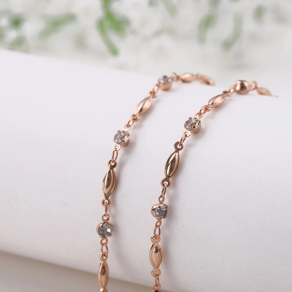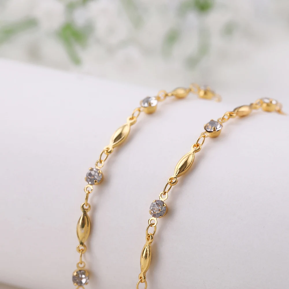 - Interspersed with tiny, sparkling rhinestones or crystals, the chain enhances your look with subtle shimmer, perfect for casual outings or more formal occasions.