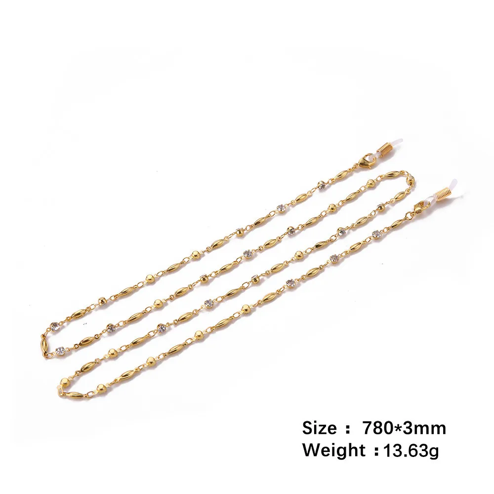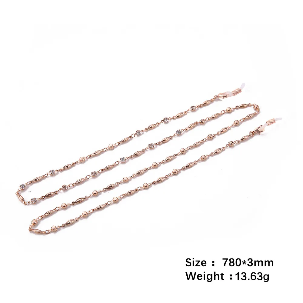 Experience effortless sophistication with this beautiful sunglasses chain, designed to elevate your style. Measuring 78 centimeters long and weighing just 13.63 grams, it offers a perfect balance of durability and delicacy. Crafted from high-quality zinc alloy, this eco-friendly accessory features a luxurious metallic finish available in gold, rose gold, or silver. The chain showcases a refined geometric pattern of elongated oval links with a subtly textured surface, adding depth and elegance to your look. Interspersed with small, sparkling rhinestones or crystals, the chain provides a subtle shimmer that enhances any outfit. Its slim profile makes it a versatile addition for women seeking both functionality and fashion-forward appeal, ideal for accessorizing sunglasses with a touch of glamour.