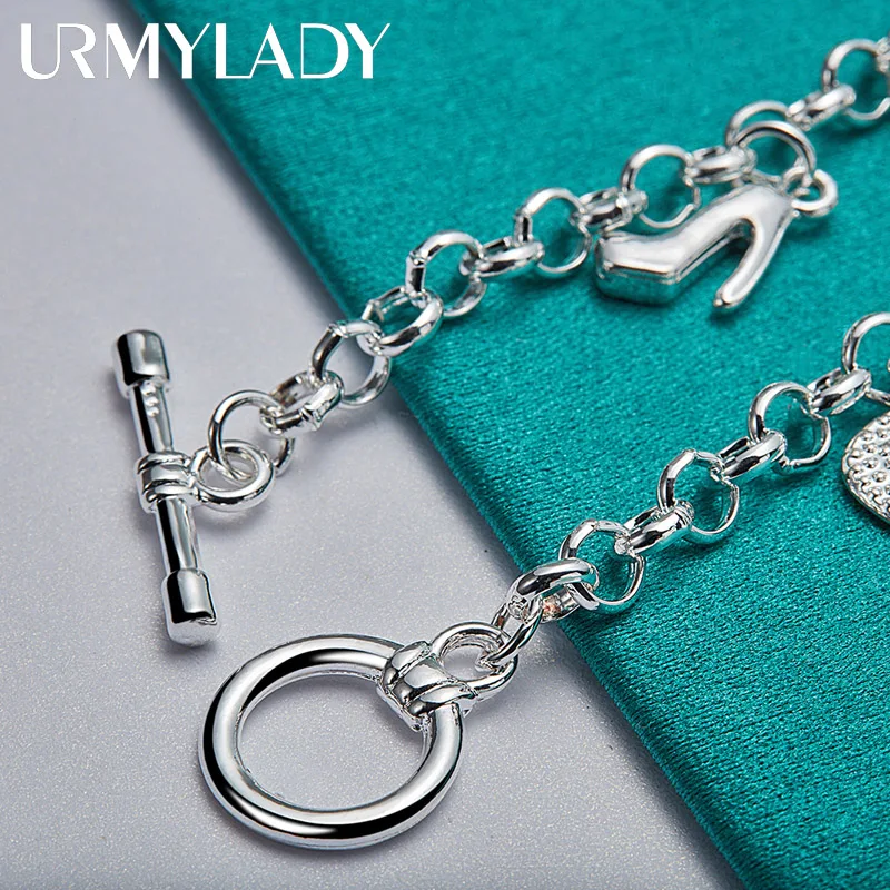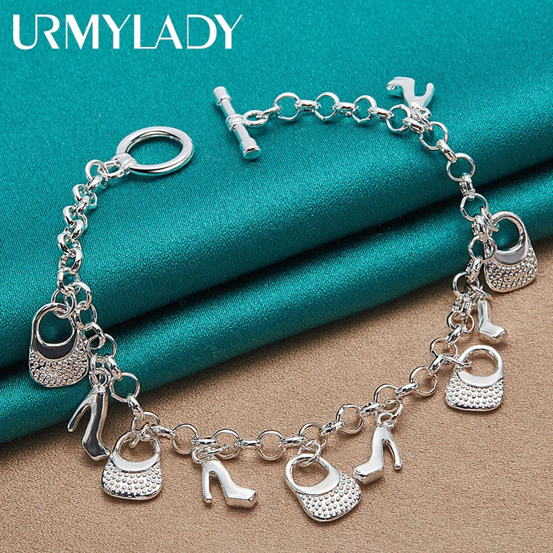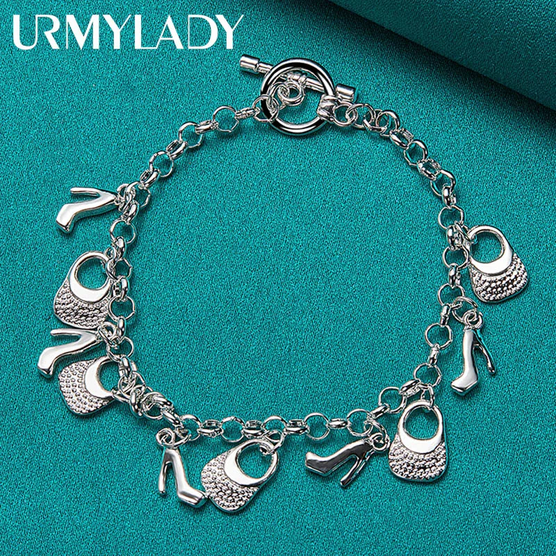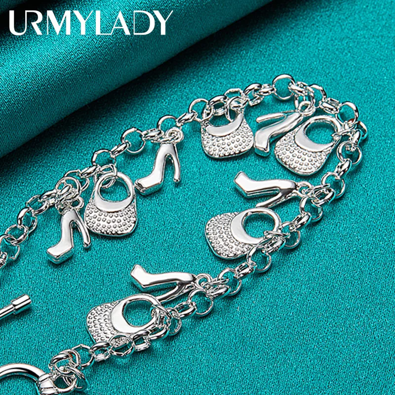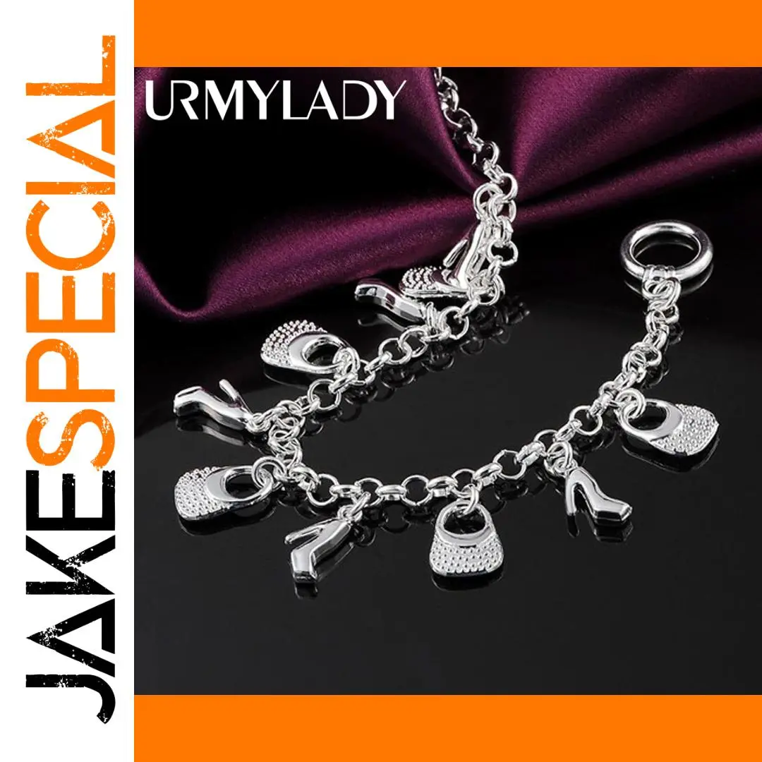 Elegant 925 Silver High Heels and Bag Charm Bracelet