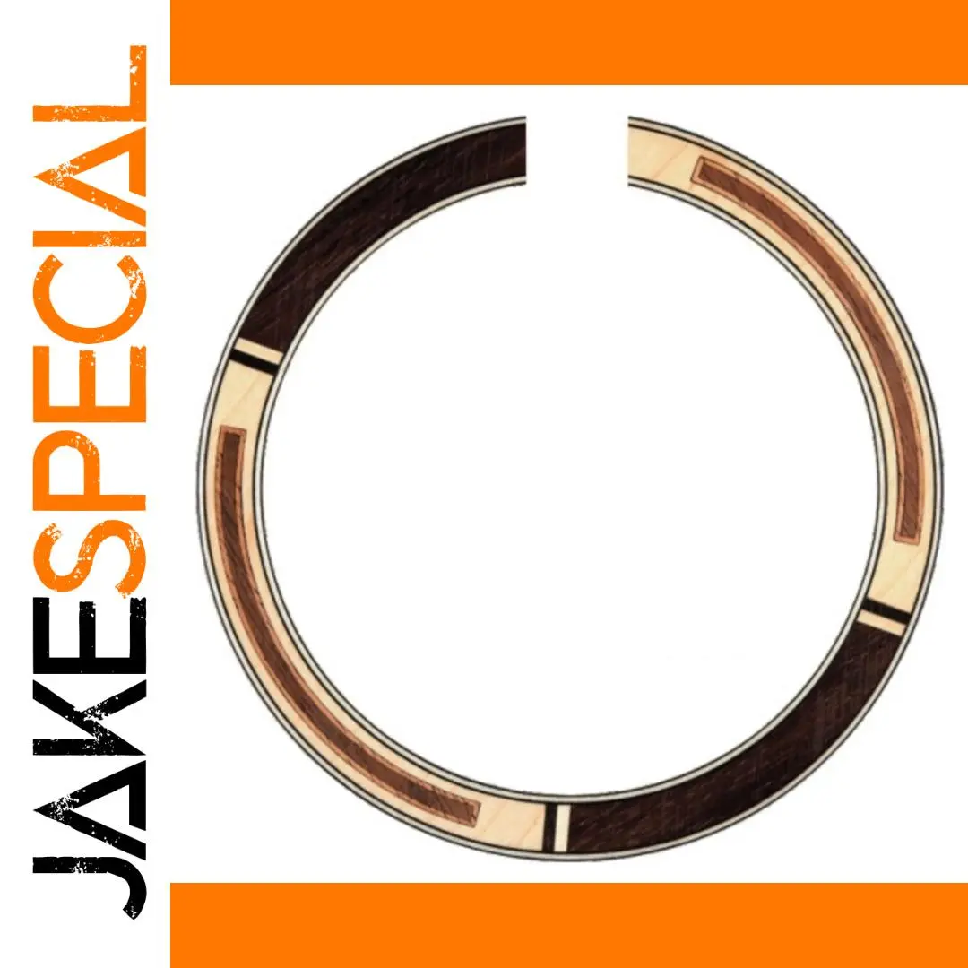 Enhance your acoustic guitar with this set of two elegant rosette inlays crafted from mahogany, rosewood, and maple. Each inlay features a rich brown color, a diameter of 134mm outside and 110mm inside, with a 12mm width and 0.8mm thickness. The layered, multi-wood pattern showcases contrasting dark and light tones, separated by fine black lines for a refined, natural look. Designed to add both decorative appeal and precise fit to your instrument, these premium inlays are perfect for custom luthier projects or replacing damaged rosettes, bringing warmth and craftsmanship to your guitar’s aesthetic.