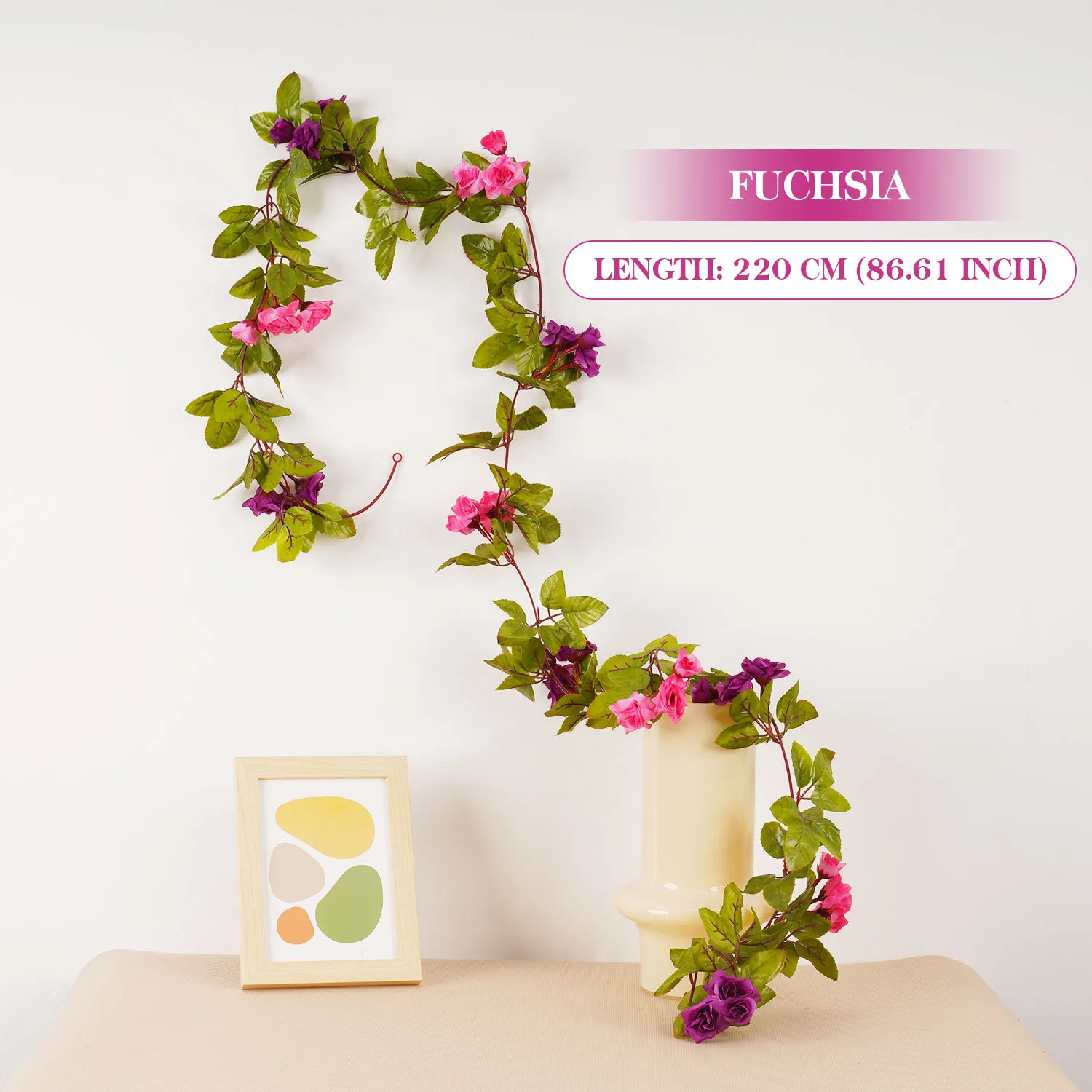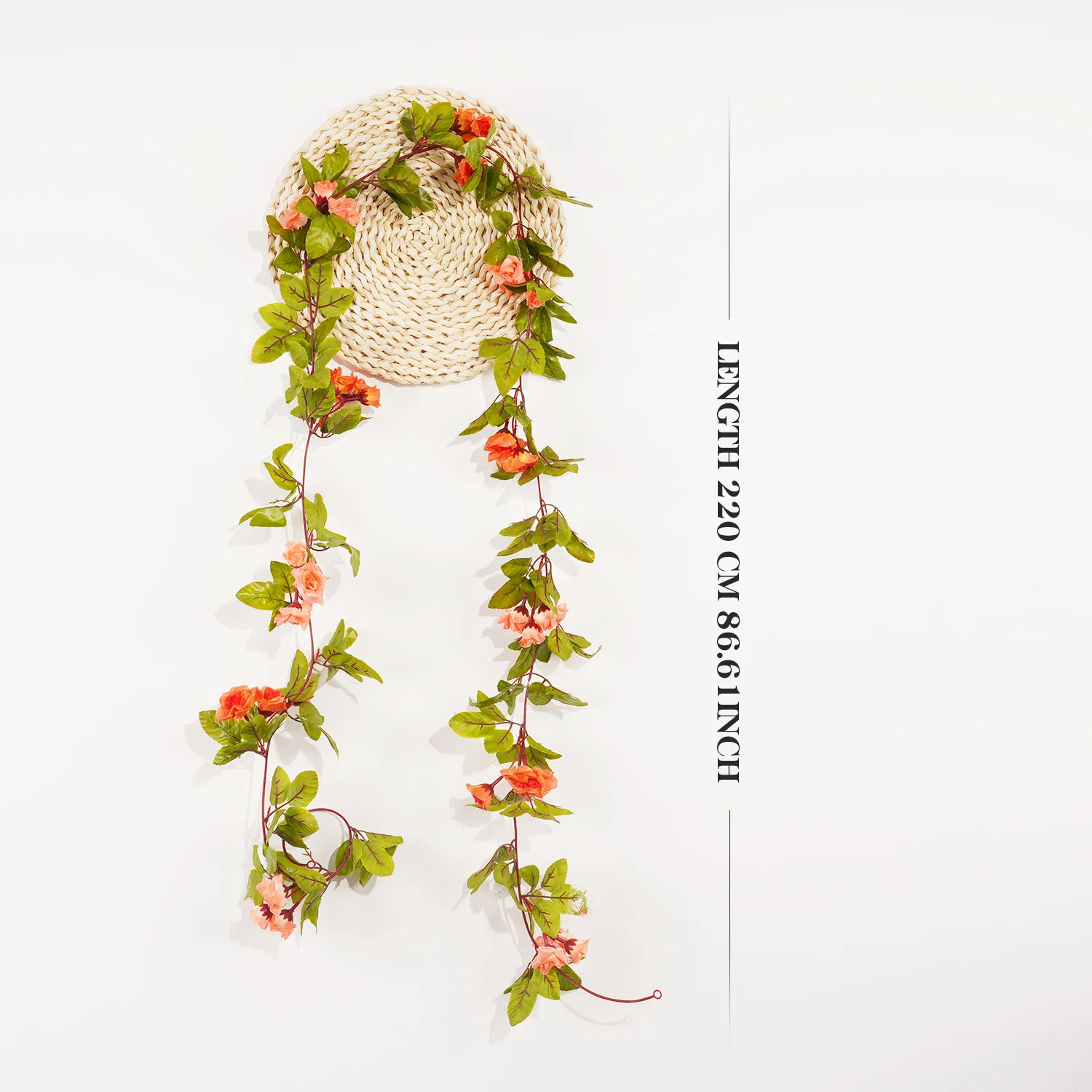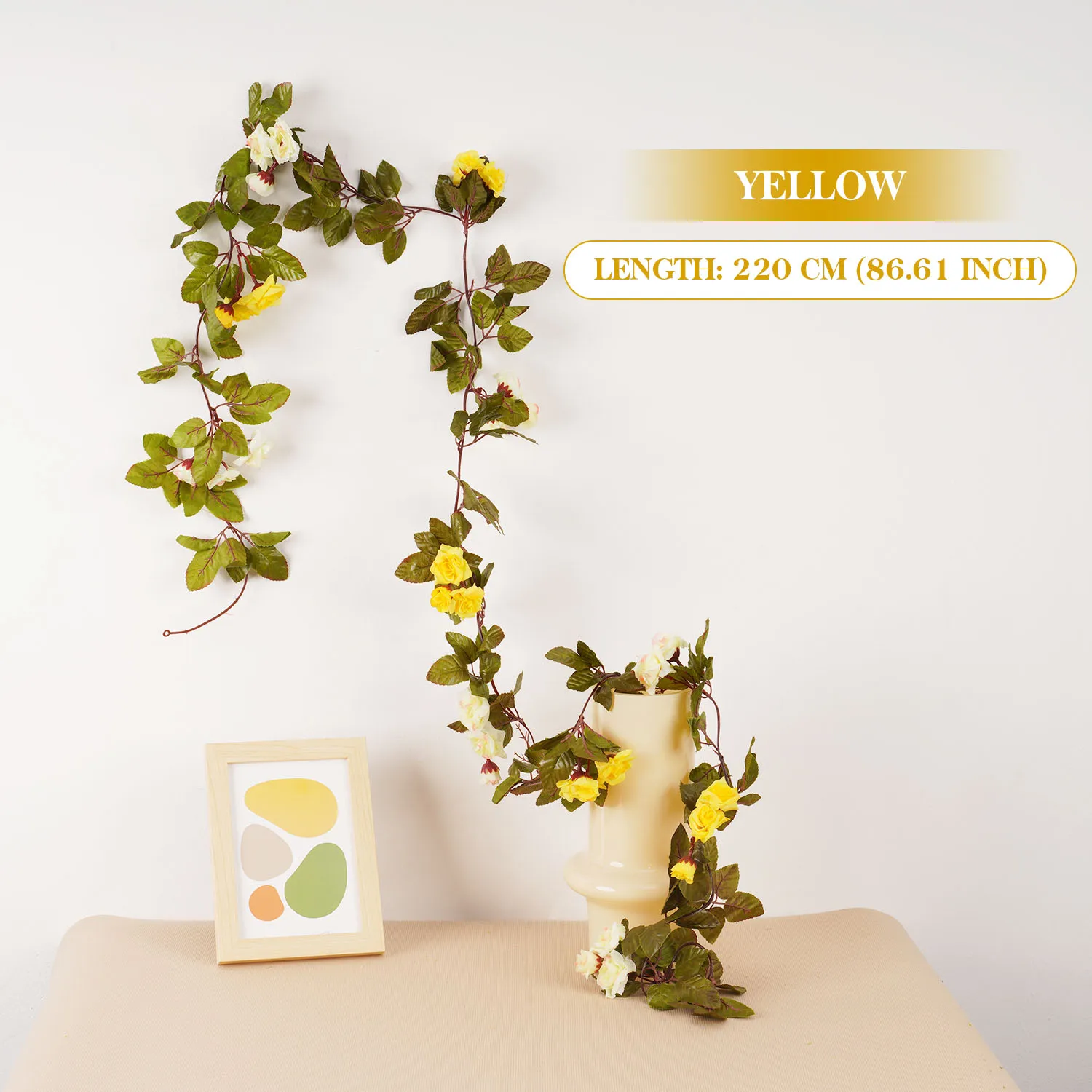 Transform your space with this exquisite DIY artificial flower vine featuring 33 silk roses in vibrant shades of Champagne, Fuchsia, Pink, Sunset color, and Yellow. Measuring 220 cm long, each rose is 3-5 cm in diameter and complemented by lush green faux leaves on a flexible plastic and silk structure, creating a realistic, flowing garland. Perfect for weddings, celebrations, or adding romantic charm to any setting, this high-quality, non-toxic decorative piece is easy to install and maintain, with the roses naturally regaining shape after arrival. Elevate your décor effortlessly and enjoy the beauty of these detailed, lifelike blooms all year round.
