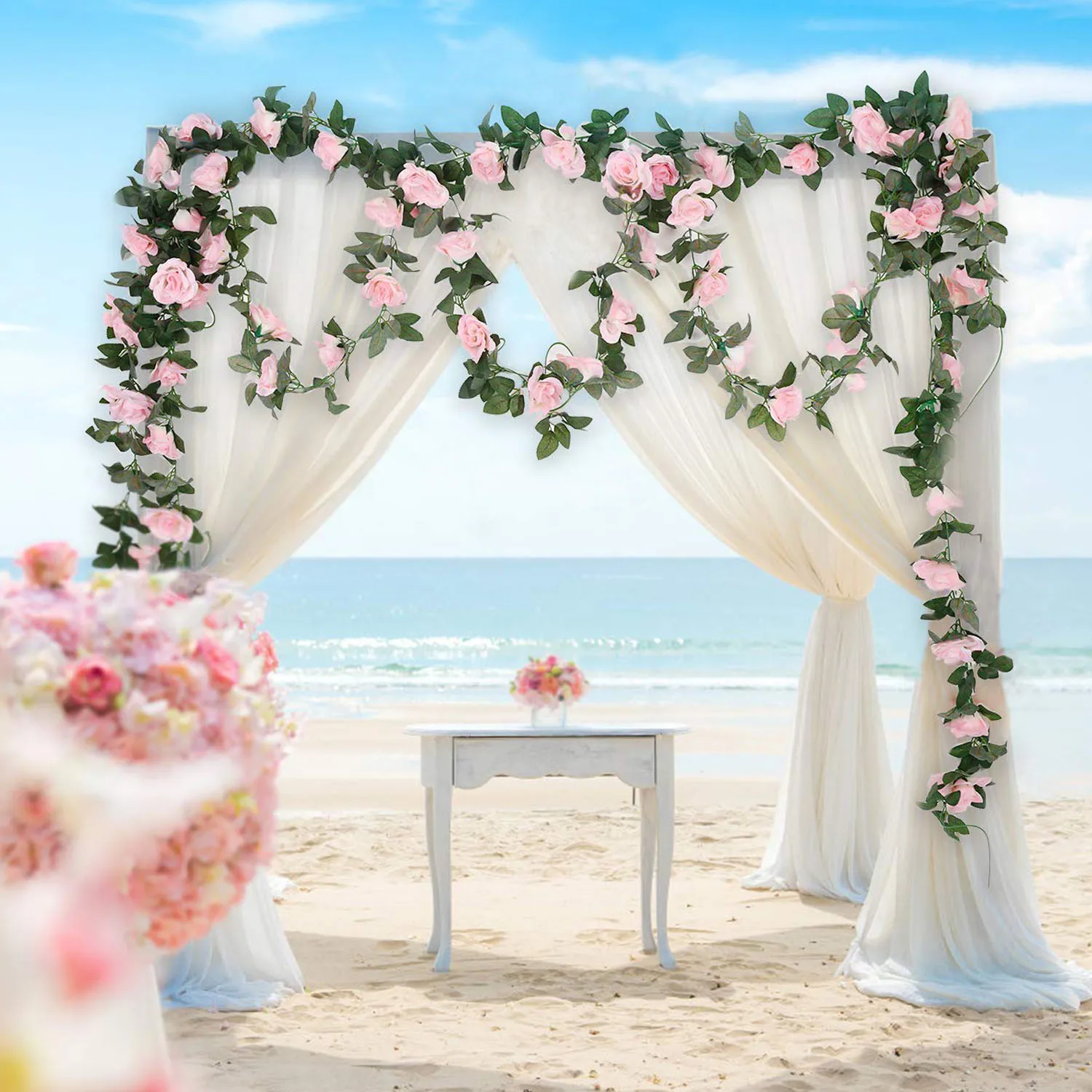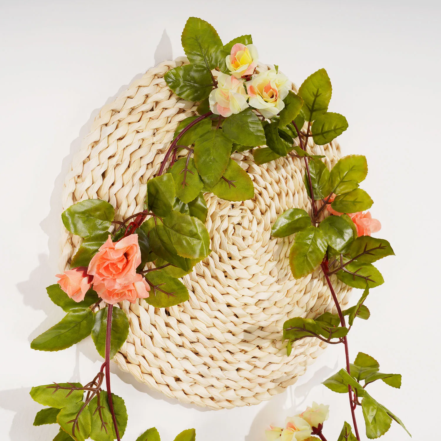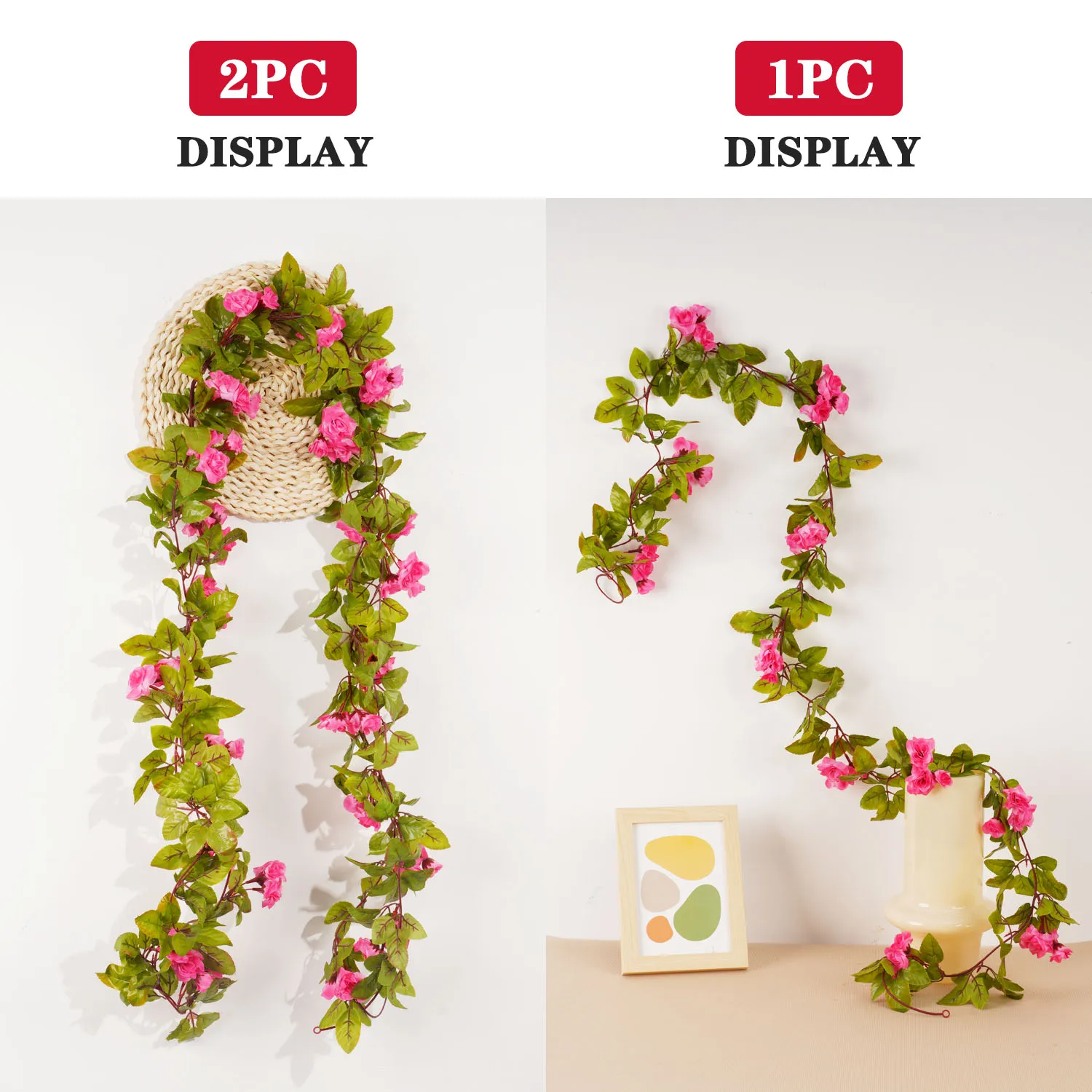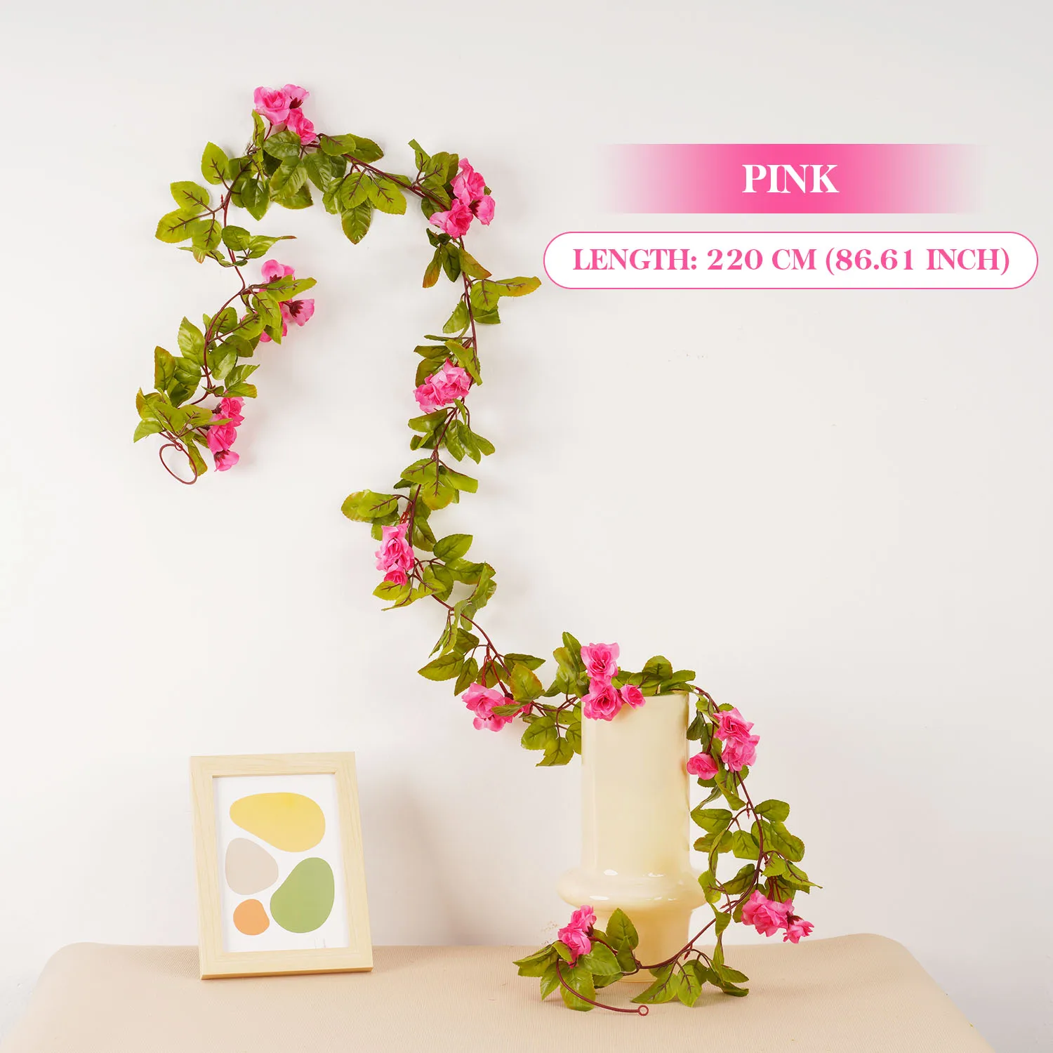 Transform your space with this exquisite DIY artificial flower vine featuring 33 silk roses in vibrant shades of Champagne, Fuchsia, Pink, Sunset color, and Yellow. Measuring 220 cm long, each rose is 3-5 cm in diameter and complemented by lush green faux leaves on a flexible plastic and silk structure, creating a realistic, flowing garland. Perfect for weddings, celebrations, or adding romantic charm to any setting, this high-quality, non-toxic decorative piece is easy to install and maintain, with the roses naturally regaining shape after arrival. Elevate your décor effortlessly and enjoy the beauty of these detailed, lifelike blooms all year round.