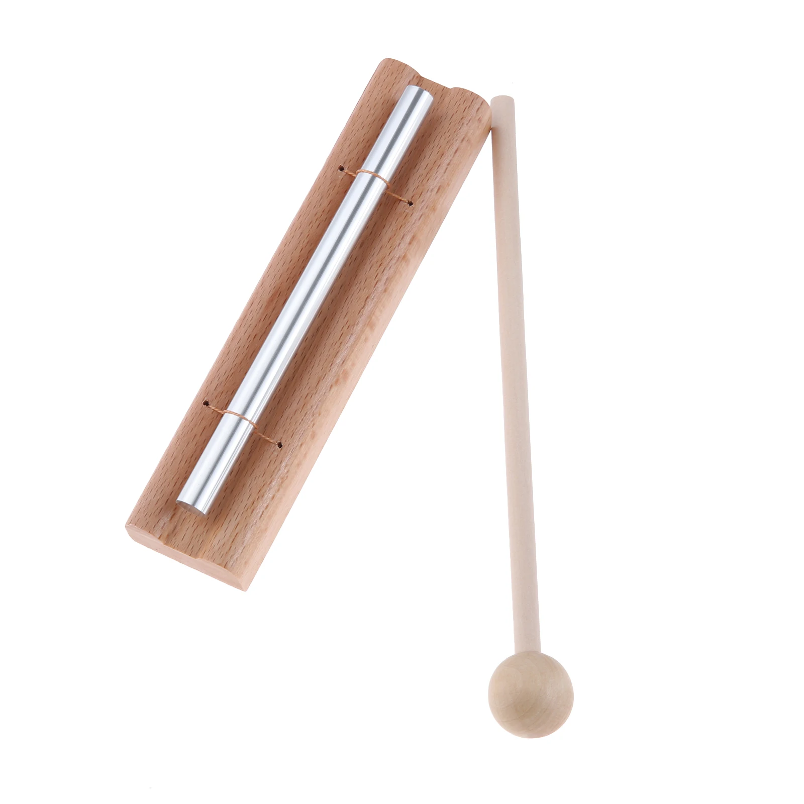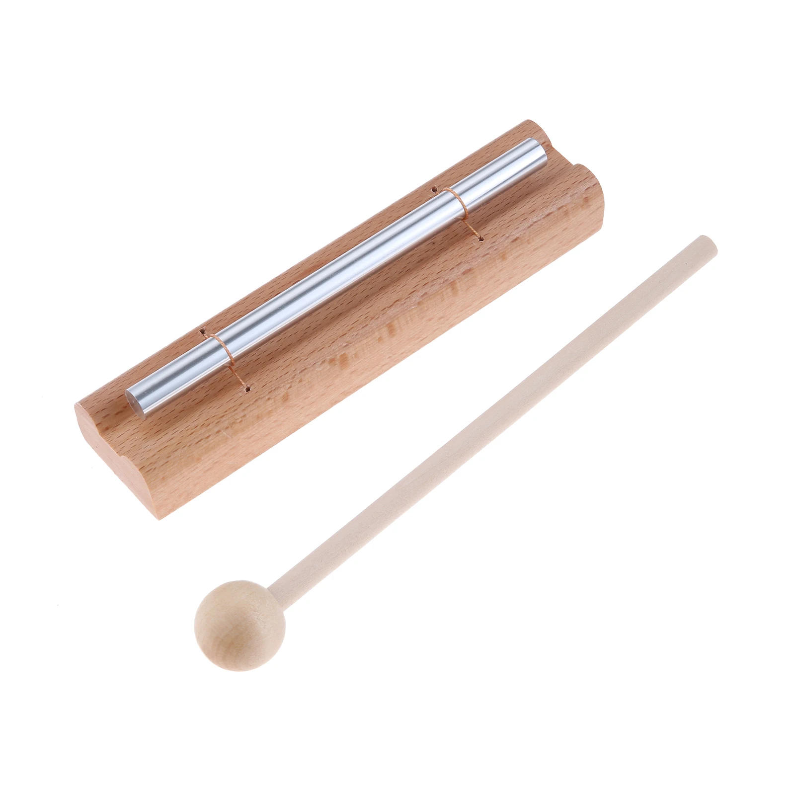 Experience tranquility with this handcrafted 1-tone beech wood wind chime featuring three aluminum rods mounted on a durable wooden base. Its minimalist design combines natural wood and polished aluminum, creating an elegant aesthetic that enhances mindfulness meditation, relaxation, and chakra healing. When gently tapped with the included drumstick, it produces a long, clear “Ding” sound that promotes stress relief and focus. Ideal for yoga, stress management, or musical development in children, this wind chime offers a calming visual and auditory experience. Crafted from chemical-free natural materials, it embodies simplicity and natural beauty, making it a perfect addition to any serene space.