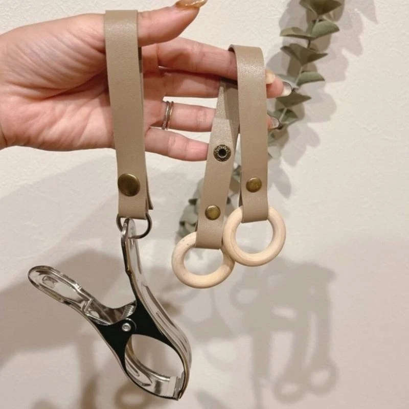 This beautifully crafted beige baby stroller shoe clip combines functionality with aesthetic appeal. Made from lightweight alloy and PU materials, it features a smooth, leather-like strap that offers a neutral, calming tone suitable for any nursery or stroller setup. The natural wooden rings add a warm organic touch, contrasting subtly with the synthetic components, while the polished silver snap buttons and lobster clasp provide a sleek, modern finish. Designed for practicality, this clip makes drying and organizing infant shoes effortless, whether you're out in the fresh air or at home. Its compact size allows easy attachment and detachment, helping keep your baby's shoes tidy and accessible. Elevate your baby gear with this minimalist yet refined accessory, ensuring convenience and style in everyday use.