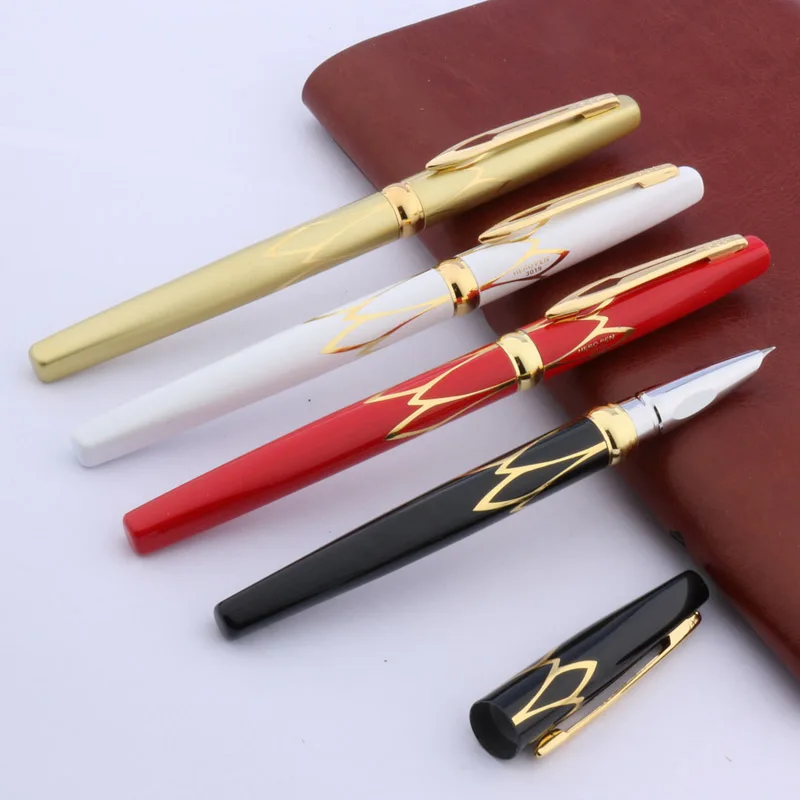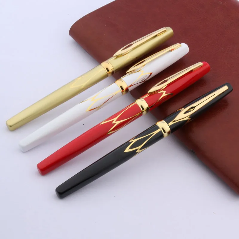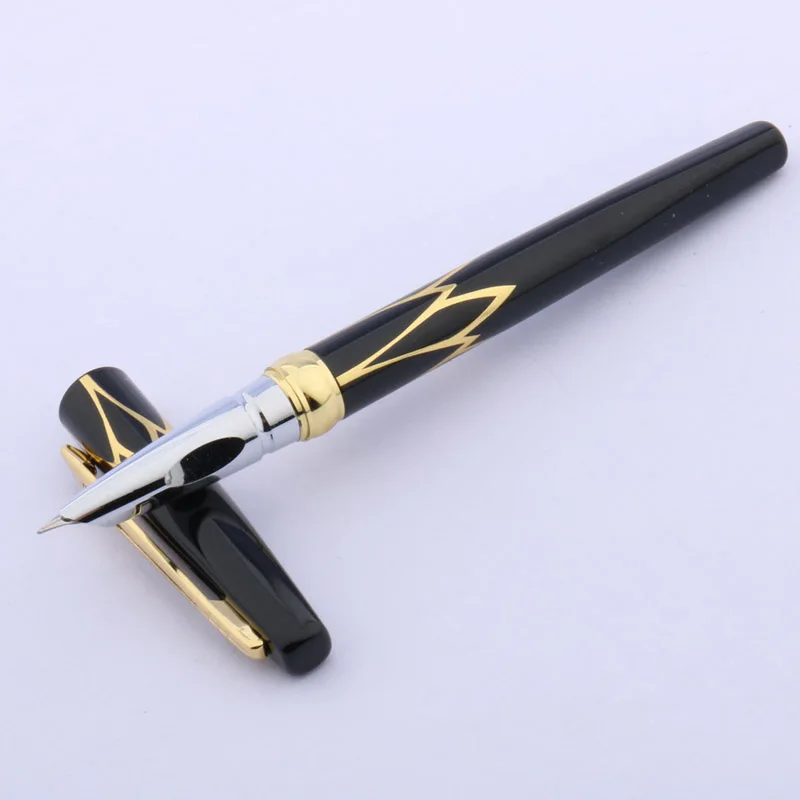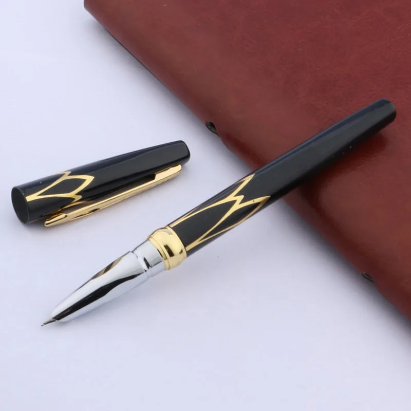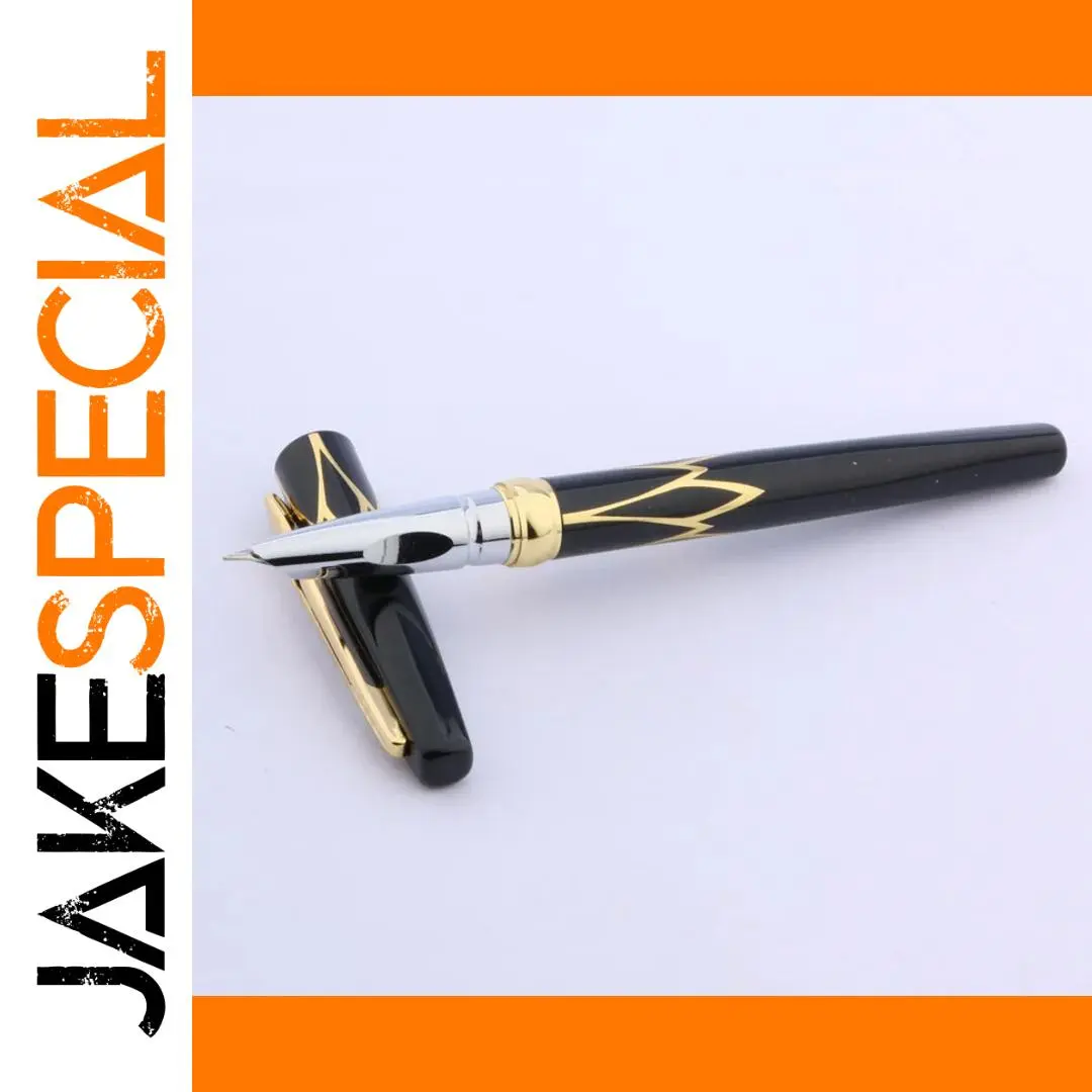 Experience the timeless allure of this sophisticated fountain pen, designed to elevate your writing experience. Crafted with a sleek metallic body available in a range of colors including wine red, golden, black, white, army green, dark khaki, and red, this pen combines modern elegance with practicality. Its glossy black finish with ornate gold accents offers an eye-catching contrast that exudes class and refinement. The silver-colored nib with a fine 0.38mm tip ensures precise, smooth writing whether you're jotting down notes at school or drafting important documents in the office. Lightweight and comfortable to hold, this pen invites you to enjoy every stroke. Its quality construction guarantees durability and style, making it an essential accessory for professionals and enthusiasts alike.