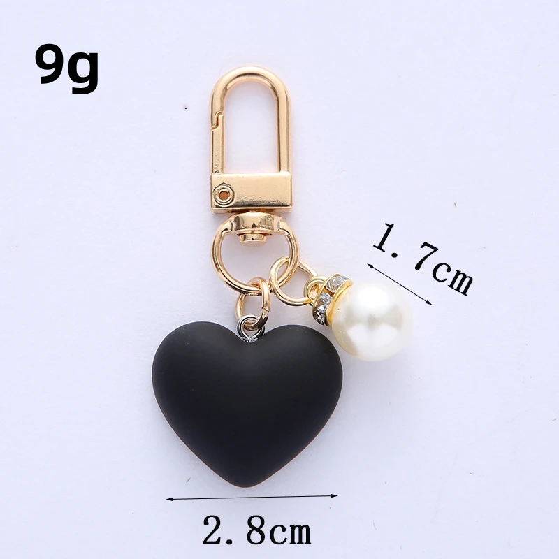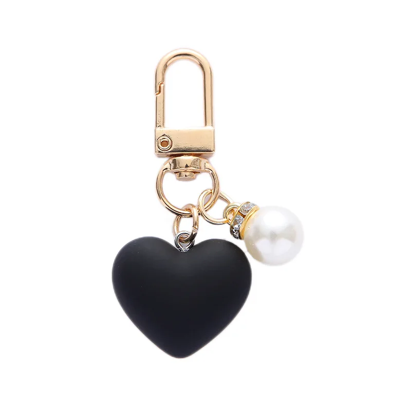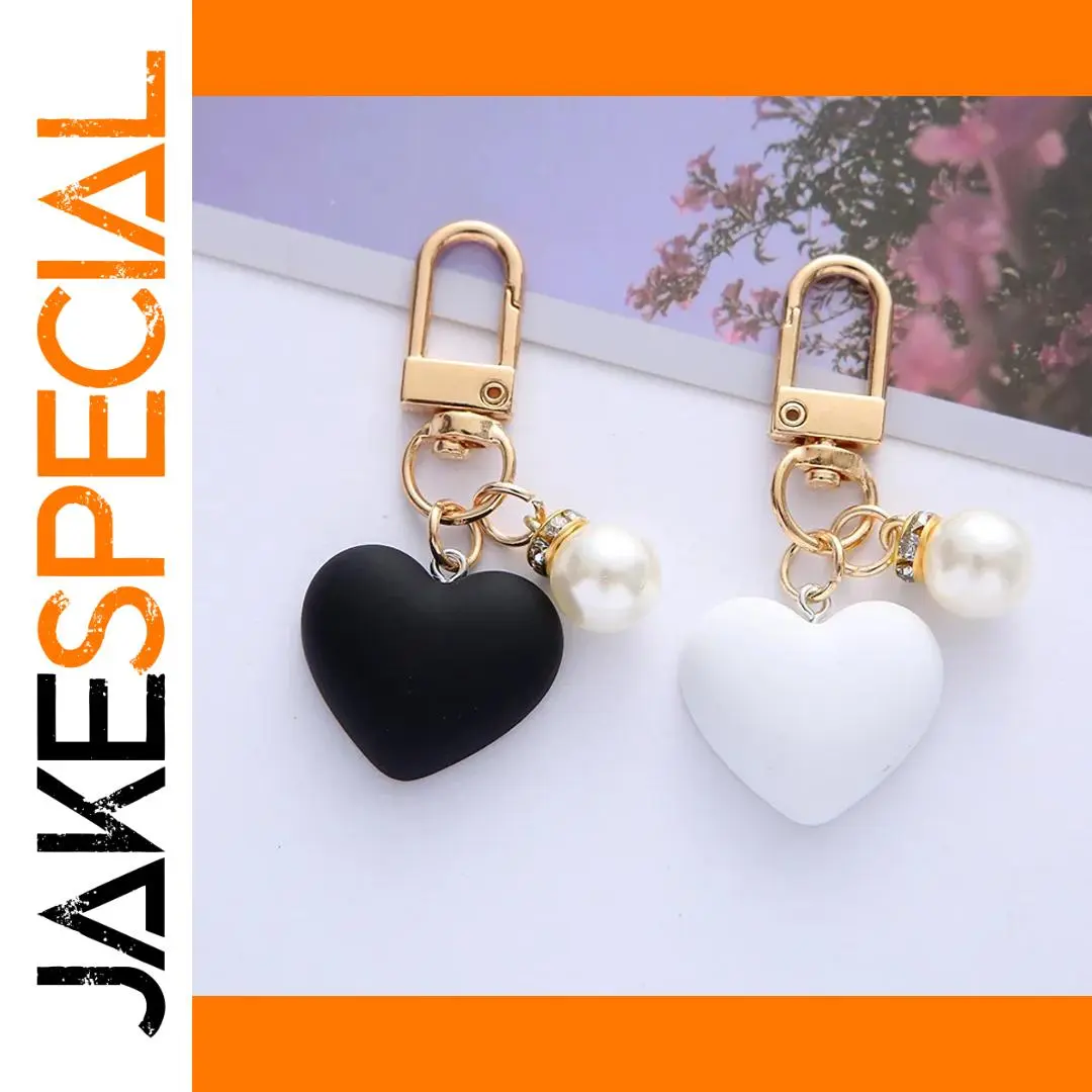 Enhance your accessories with this fashionable heart-shaped keychain available in black and white frosted finishes. Crafted from durable zinc alloy with a sleek rose gold-tone D-shaped buckle, it features elegant pearl charms adorned with sparkling rhinestones, adding a refined touch. Versatile and trendy, this keychain functions as a bag pendant or headphone case ornament, making it perfect for men, women, and lovers. Its minimalist, modern design combines matte and glossy elements for a chic look. Compact and lightweight, it perfectly complements keys, bags, or tech accessories, effortlessly elevating your style while offering practical functionality.
