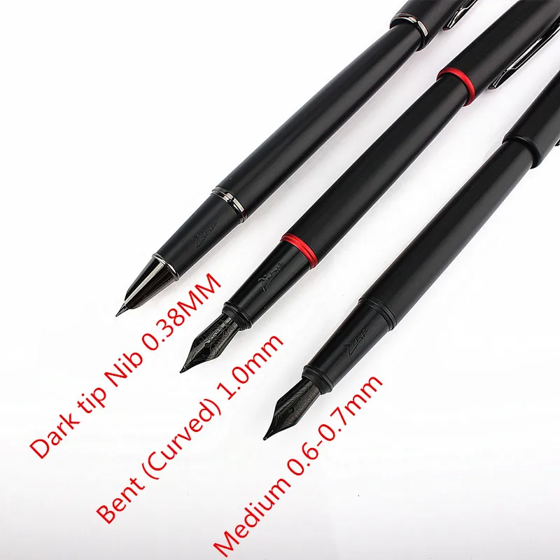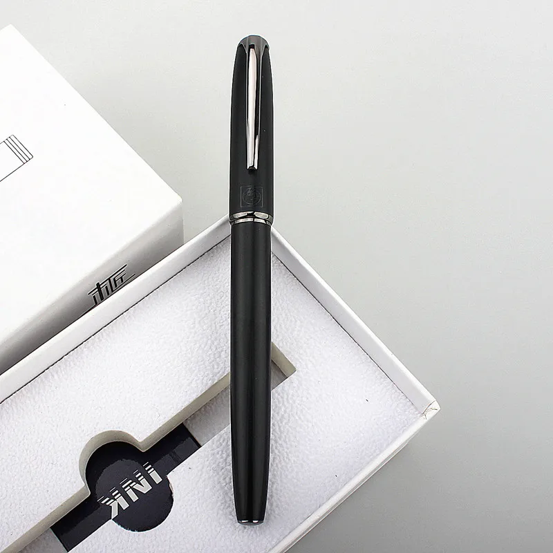 Immerse yourself in the smooth and sophisticated writing experience offered by this high-quality black fountain pen. Designed with a sleek, glossy cylindrical body that tapers towards the nib, it exudes modern elegance and functional precision. The stainless steel nib Available in fine 0.38mm and medium 0.6-0.7mm sizes provides excellent control for detailed or bold writing. Its minimalistic design is highlighted by a subtle silver ring near the base, adding a touch of contrast. Crafted from durable metal, the pen's refined appearance and balanced weight make it comfortable for long writing sessions, whether at work, school, or personal journaling. Elevate your stationery collection with this stylish, reliable fountain pen that combines quality and style seamlessly.