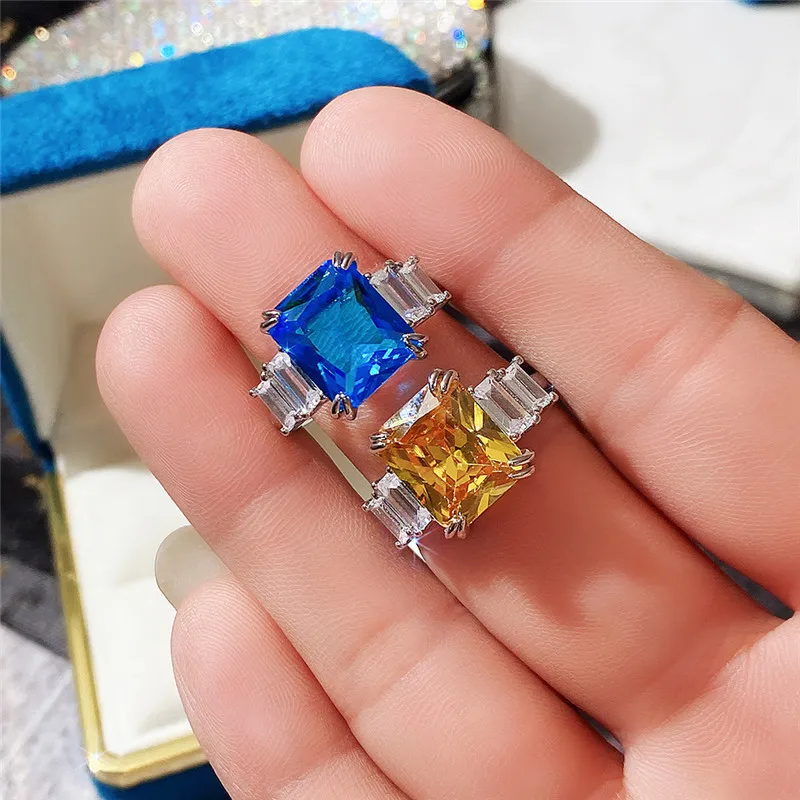 Elegant Blue and Yellow Zircon Ring for Women