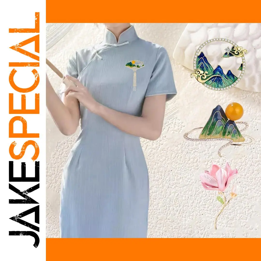 Immerse yourself in traditional beauty with this exquisite Chinese-style brooch. Crafted from high-quality zinc alloy and adorned with sparkling crystal rhinestones, it features intricate landscape motifs in a circular design. The soft pastel gray dress paired with this detailed accessory creates a harmonious blend of cultural elegance and modern fashion. Brighten any outfit—be it formal or casual—and make a memorable impression at parties, weddings, or daily outings. The brooch’s versatile design ensures effortless styling on sweaters, dresses, shawls, shirts, or jackets. Feel confident and sophisticated, knowing this piece will add a touch of delicate charm and eye-catching sparkle to your look, making every moment special. Embrace timeless beauty with this beautiful accessory that enhances your personal style effortlessly.