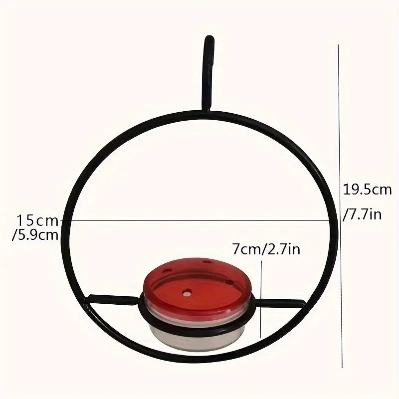 Imagine enhancing your outdoor space with this beautifully designed circular hummingbird feeder, measuring 18.5 x 15 x 7 cm. Crafted from high-quality metal with expert welding, it boasts a durable black powder finish that naturally attracts hummingbirds and withstands outdoor conditions. The transparent glass container, with a nectar capacity of 3 to 4 ounces, allows you to easily monitor nectar levels while providing a delightful view for your feathered visitors. The bold red lid adds a vibrant accent, drawing hummingbirds to your garden or balcony. Its bee and wasp-proof design, combined with a long-lasting powder-coated stand, guarantees a mess-free, stable, and efficient feeding experience, inviting more lively birds into your outdoor sanctuary.