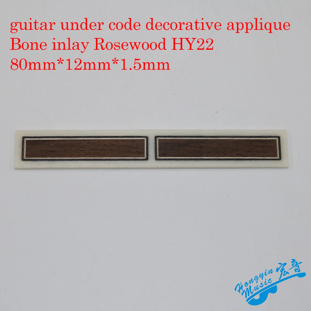 Enhance the appearance of your classical guitar with this meticulously crafted decorative bridge applique, measuring 80mm x 12mm x 1.5mm. Made from premium materials including pure bone inlays with maple or rosewood accents, and reinforced with beef bone edges for superior quality, or durable PVC for certain models, it offers a refined, polished aesthetic. Designed for direct bonding with 502 glue, it seamlessly integrates into various models such as HY19, HY20, HY21, HY22, and more. Available in a variety of elegant colors including bone DJ-59, DJ-60, HY16, HY23, HY28, and PVC HY30 to HY34, this single-piece component is perfect for professional and hobbyist guitar customization.