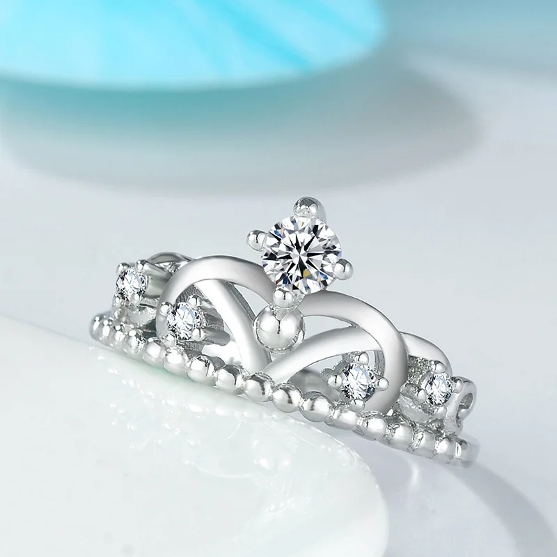 Step into timeless elegance with this stunning women's ring. Crafted from high-quality 925 sterling silver, it features a polished, smooth band topped with a regal crown motif. The intricate crown design is adorned with sparkling AAA cubic zirconia stones set in a resilient prong setting, creating a shimmering, luxurious effect. With its delicate intertwining bands and rounded metal elements resembling miniature spheres, this ring exudes both sophistication and charm. Lightweight at approximately 4 grams, it offers comfortable wear across all seasons. Available in versatile US sizes 5 through 10 and in elegant silver, blue, and white hues, this piece is perfect for special occasions like engagements, weddings, anniversaries, or simply elevating your everyday style.