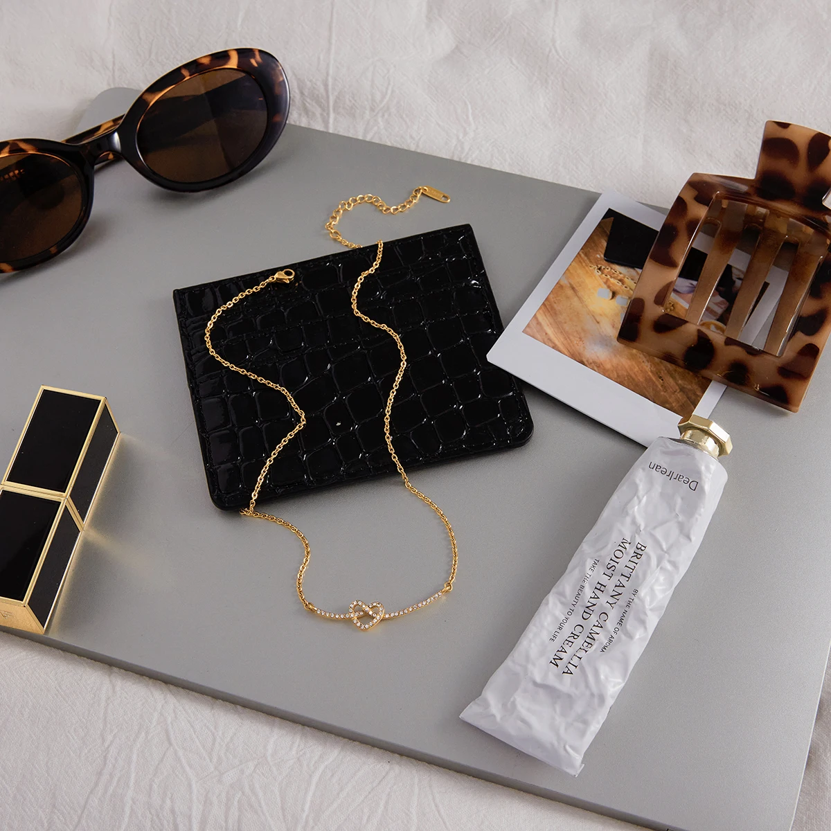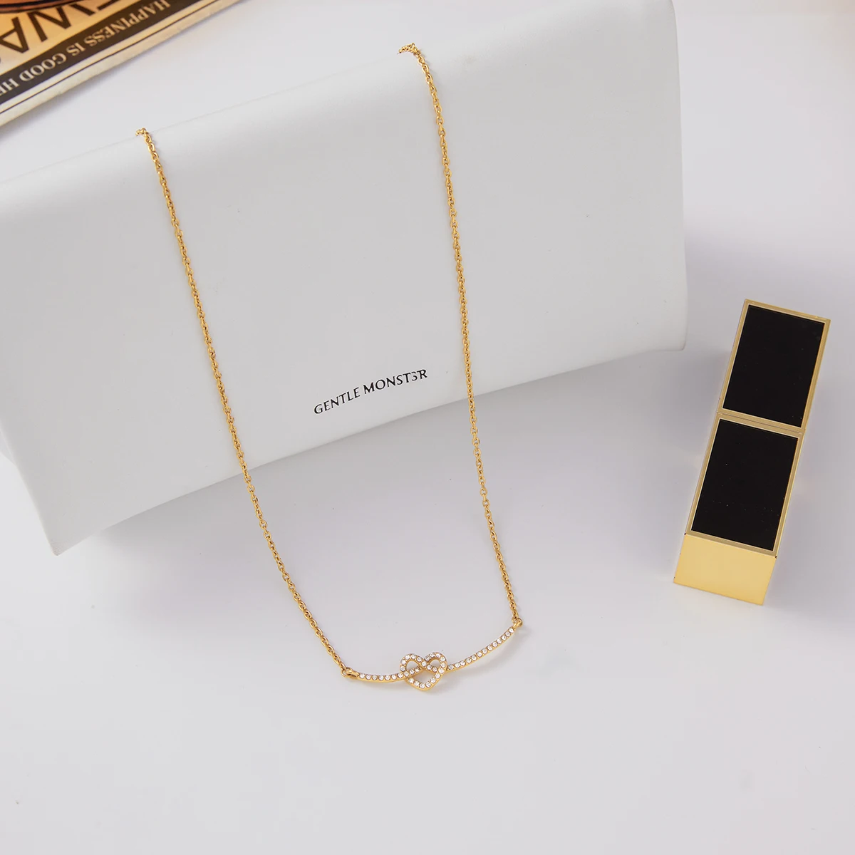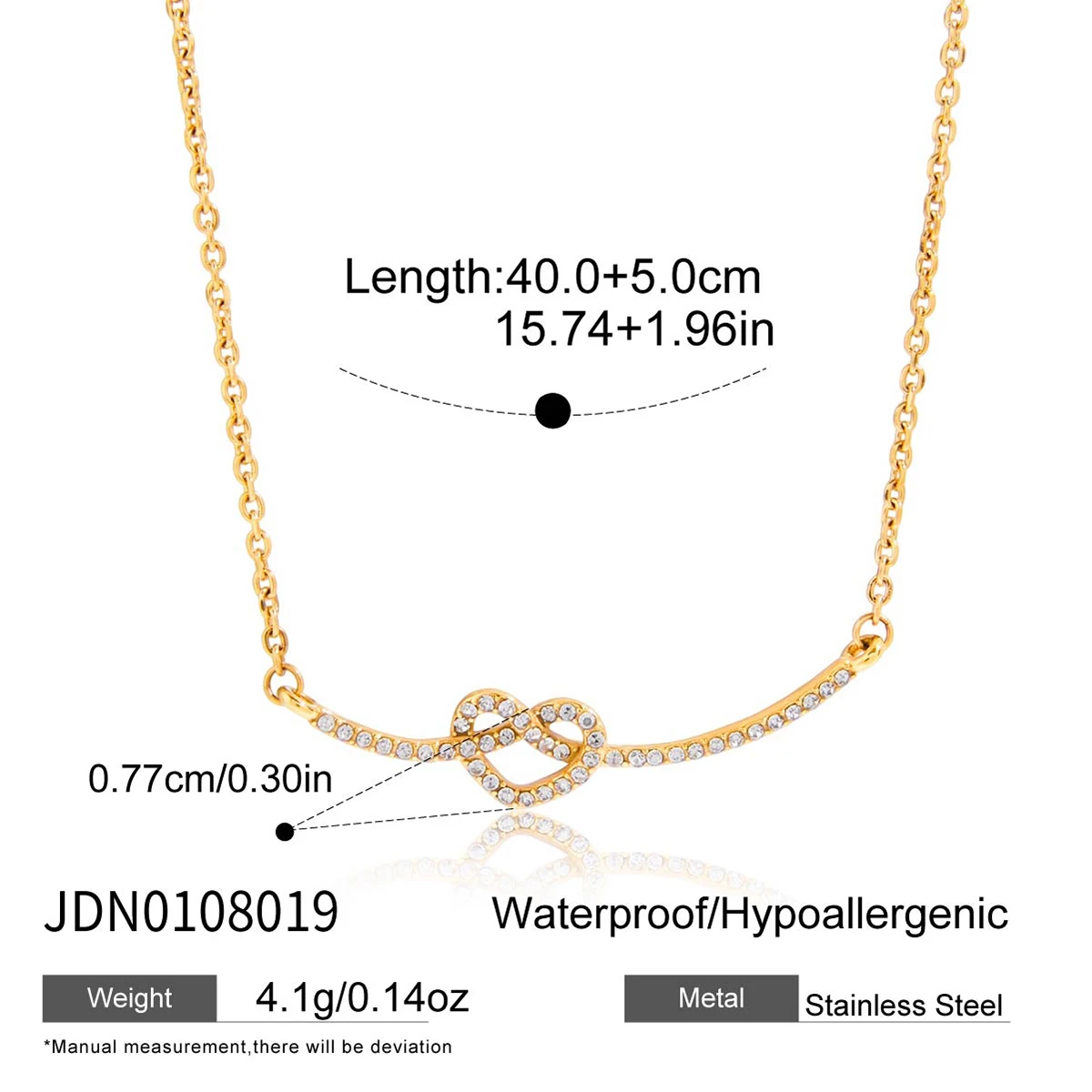 Experience timeless elegance with this women's pendant necklace, featuring a beautifully crafted intertwined double heart design. Made from high-quality stainless steel with a shiny gold-tone finish, this necklace exudes sophistication and subtle glamour. The delicate link chain complements the pendant perfectly, creating a refined silhouette that will instantly elevate your style for any occasion, from casual outings to festive parties. The sparkling rhinestones outlining one heart add a captivating touch of brilliance, while the geometric water diamond shape provides a modern yet classic look. Designed with versatility in mind, this jewelry piece will become your go-to accessory, enhancing your style effortlessly and offering a luminous glow that catches the eye with each movement.