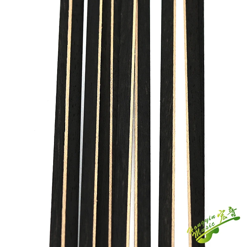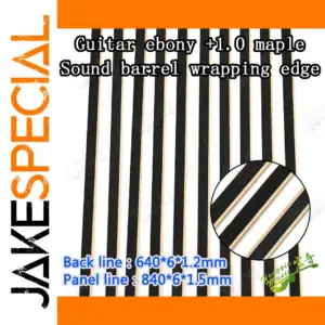 This set of this high-quality solid wood guitar sound barrel edging strips offers an exquisite decorative touch for your musical instrument. Crafted from a striking combination of ebony and maple, these strips provide a sleek, contrasting striped appearance that enhances the aesthetic appeal of guitar back panels. Designed with precision, each strip features a smooth, polished surface and clean, exact edges. The natural grain of maple adds warmth and subtle texture, while the rich black ebony imparts a sophisticated, bold accent. Whether you're restoring, customizing, or building your guitar, these strips will add a refined, professional finish. Imagine your guitar transformed with these elegant details, elevating its visual and artistic value.