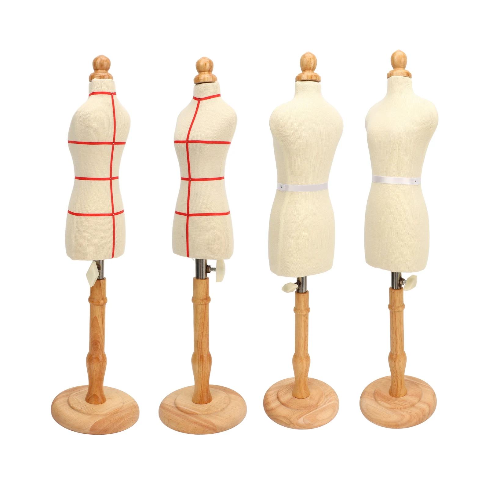 Step into the world of professional tailoring with this beautifully crafted female dress form. Designed to elevate your sewing, fitting, and display experience, this dress form features a slender, elongated silhouette that exudes vintage charm and sophistication. The cover of the left style (Stye 1) boasts smooth beige or cream fabric with bright red grid lines, adding both a functional and visually appealing element. The right style (Stye 2) offers a plain, light-colored fabric accented by a delicate white satin ribbon at the waist, enhancing its elegant simplicity. Built with precision and durability, this dress form helps you perfect every detail of your garment, making it an essential tool for designers and enthusiasts alike.