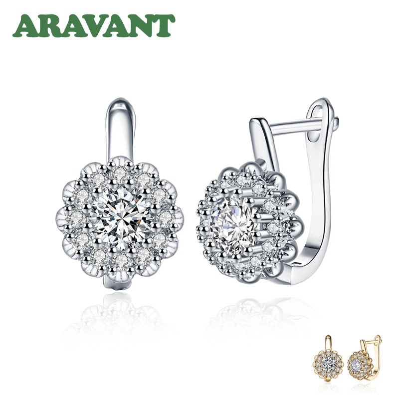 Imagine effortlessly elevating your style with these stunning floral-inspired drop earrings. Crafted from 925 sterling silver and plated with warm 18K gold, they exude a luxurious glow. The design features a central large cubic zirconia stone, surrounded by smaller pave-set stones in a delicate, flower-like pattern that catches light beautifully. Measuring approximately 15mm in height and 10mm in width, these earrings are perfect for both special occasions and daily elegance. Their lightweight of 3.80 grams ensures comfortable wear, while the hinged lever-back closure offers security and convenience. Whether for a wedding, a party, or as an exquisite gift, these trendy earrings blend sophistication with femininity, making every moment memorable.