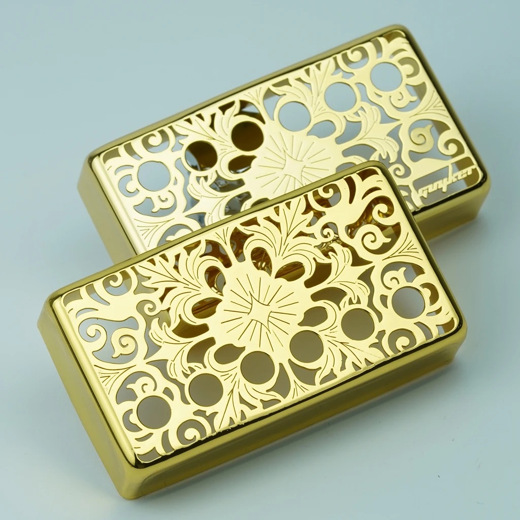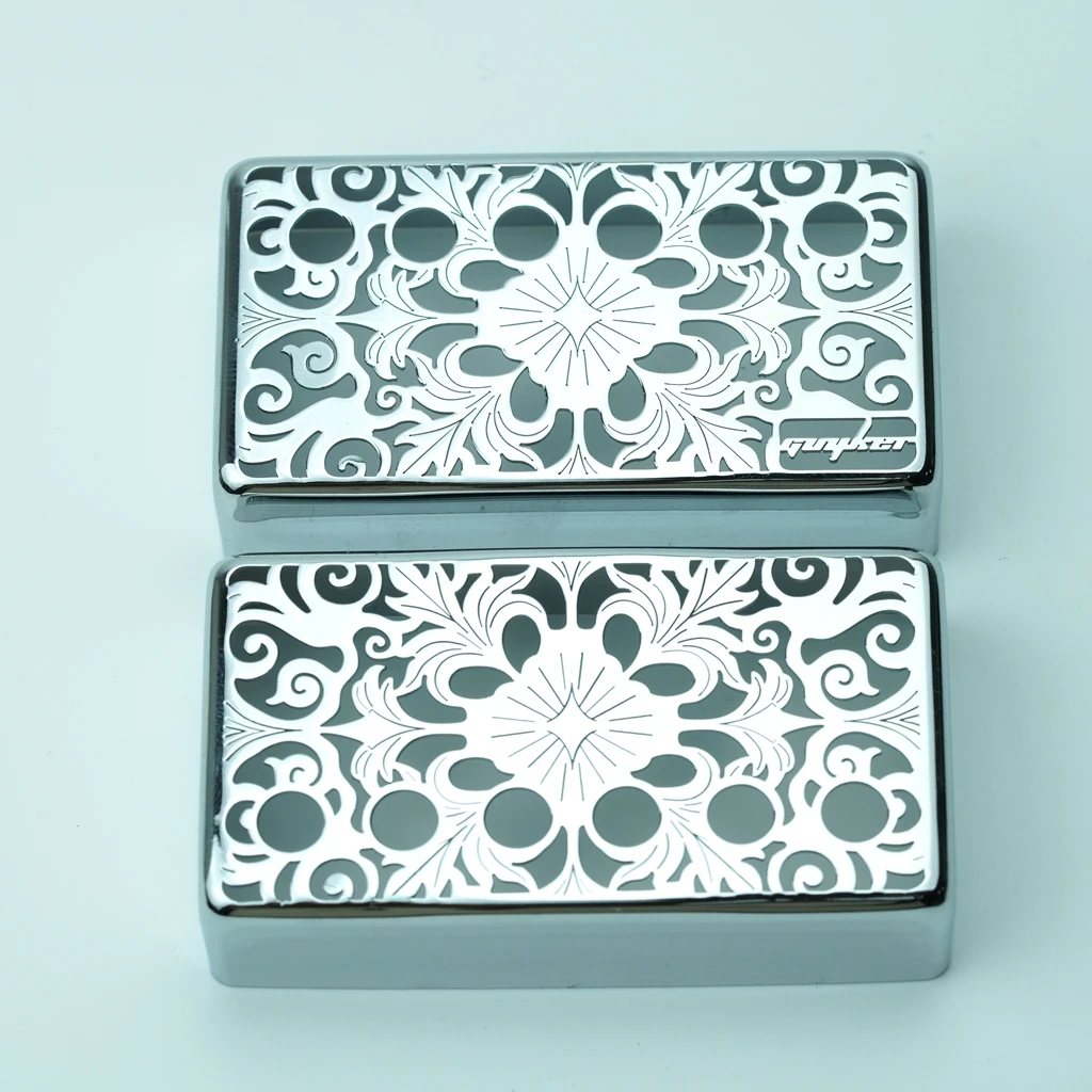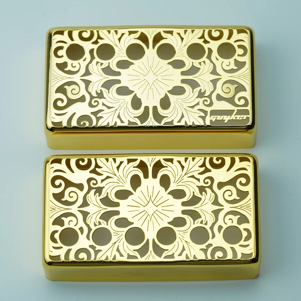 Transform your electric guitar with this durable, metal hollowed-out pickup cover available in bronze, chrome, gold, and rainbow finishes. Featuring an intricate, symmetrical floral design, the cover adds a touch of elegance while protecting your pickups. Its polished, reflective surface and smooth, rounded edges enhance aesthetic appeal and durability. Designed for universal compatibility and easy installation, this stylish upgrade elevates your guitar’s look and performance. Made without high-concerned chemicals, it ensures safe use, making it an ideal choice for musicians seeking a combination of functionality and sophisticated design. Perfect for customizing and improving your instrument’s visual and functional appeal.