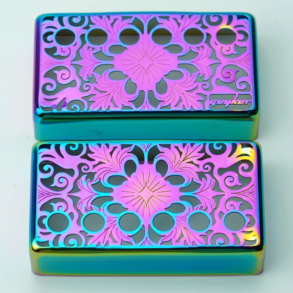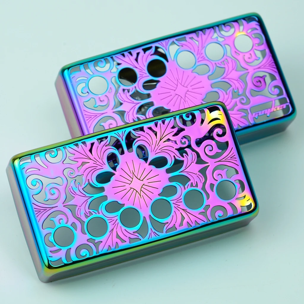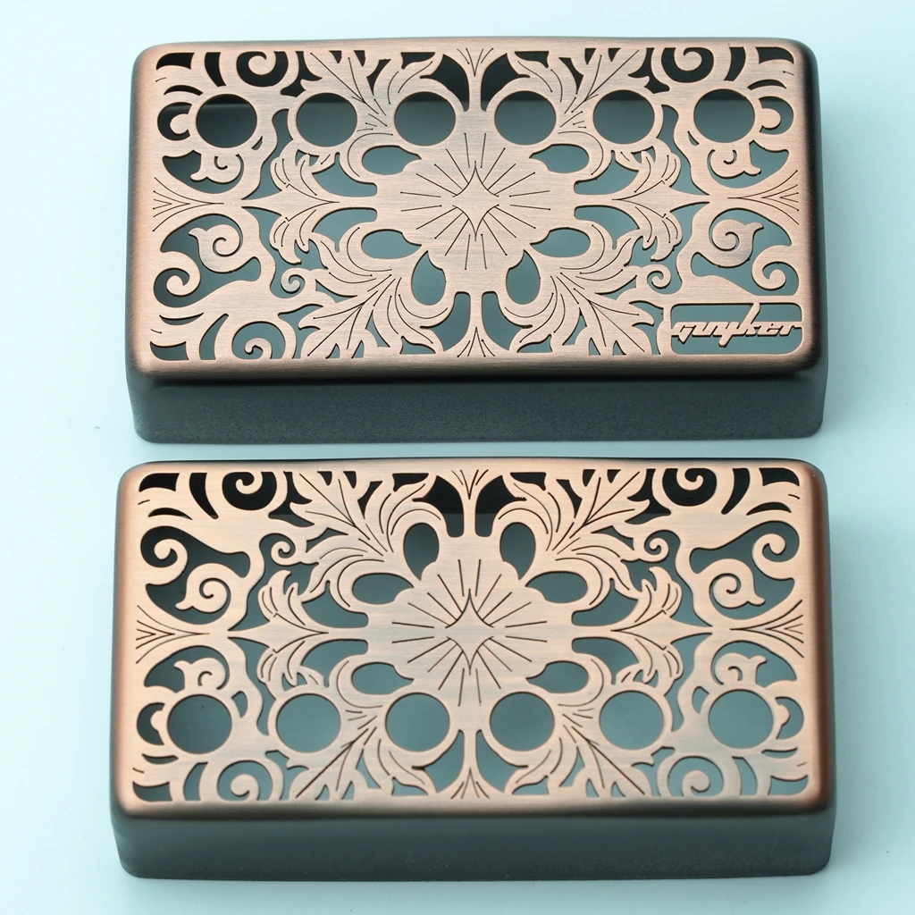 Transform your electric guitar with this durable, metal hollowed-out pickup cover available in bronze, chrome, gold, and rainbow finishes. Featuring an intricate, symmetrical floral design, the cover adds a touch of elegance while protecting your pickups. Its polished, reflective surface and smooth, rounded edges enhance aesthetic appeal and durability. Designed for universal compatibility and easy installation, this stylish upgrade elevates your guitar’s look and performance. Made without high-concerned chemicals, it ensures safe use, making it an ideal choice for musicians seeking a combination of functionality and sophisticated design. Perfect for customizing and improving your instrument’s visual and functional appeal.