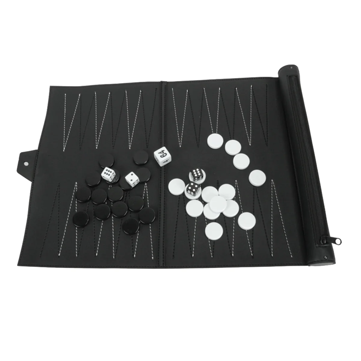 Experience the classic game of backgammon with this sleek, portable foldable set featuring a black PU leatherette playing surface and plush felt interior. Measuring approximately 30 x 30 cm, it includes 30 glossy checkers, 5 dice, and a foldable design for easy travel and storage. The elegant, minimalist aesthetic is complemented by neatly stitched edges and a durable construction, making it perfect for indoor, outdoor, travel, or family fun. Designed for both beginners and experienced players, this stylish set combines functional craftsmanship with modern sophistication, ensuring hours of engaging gameplay whether at home, on the go, or with friends.