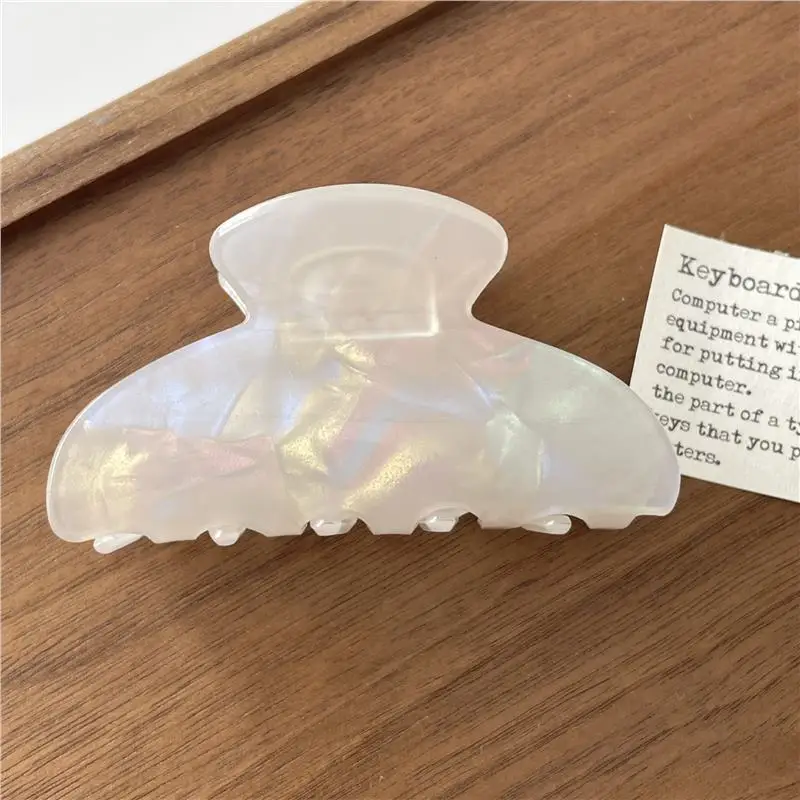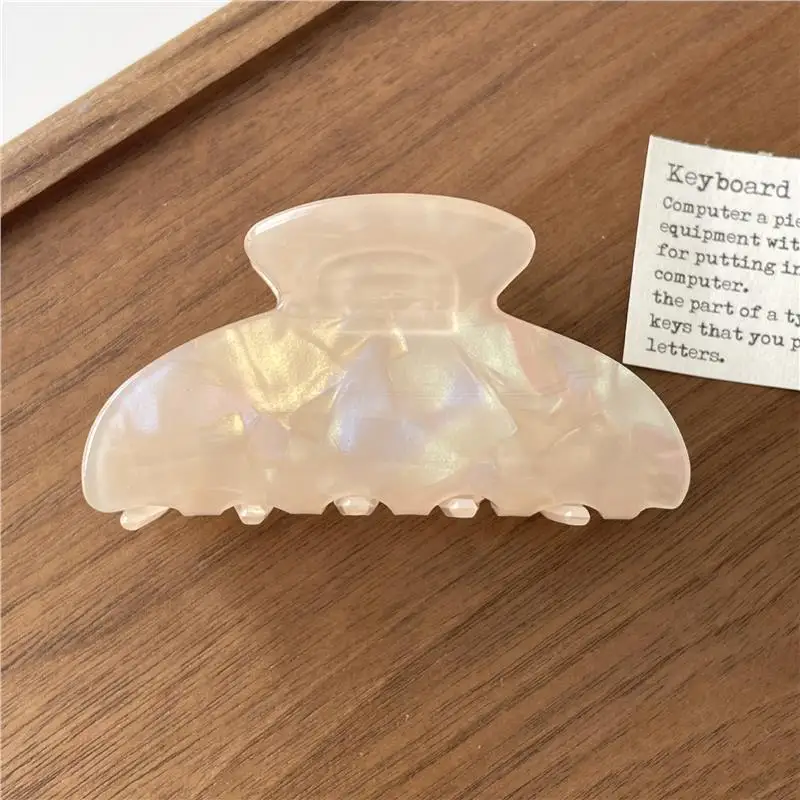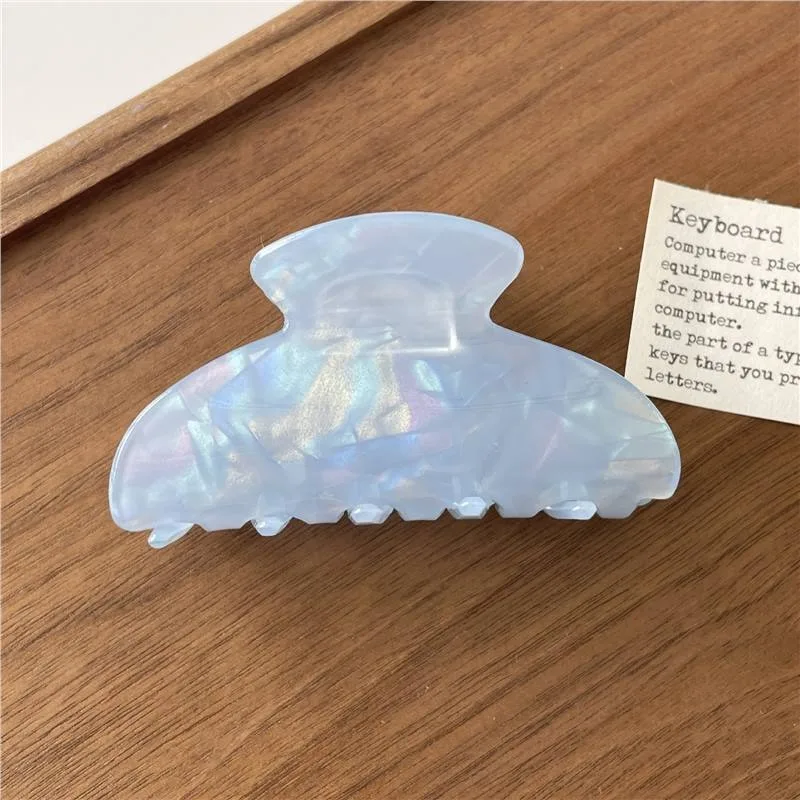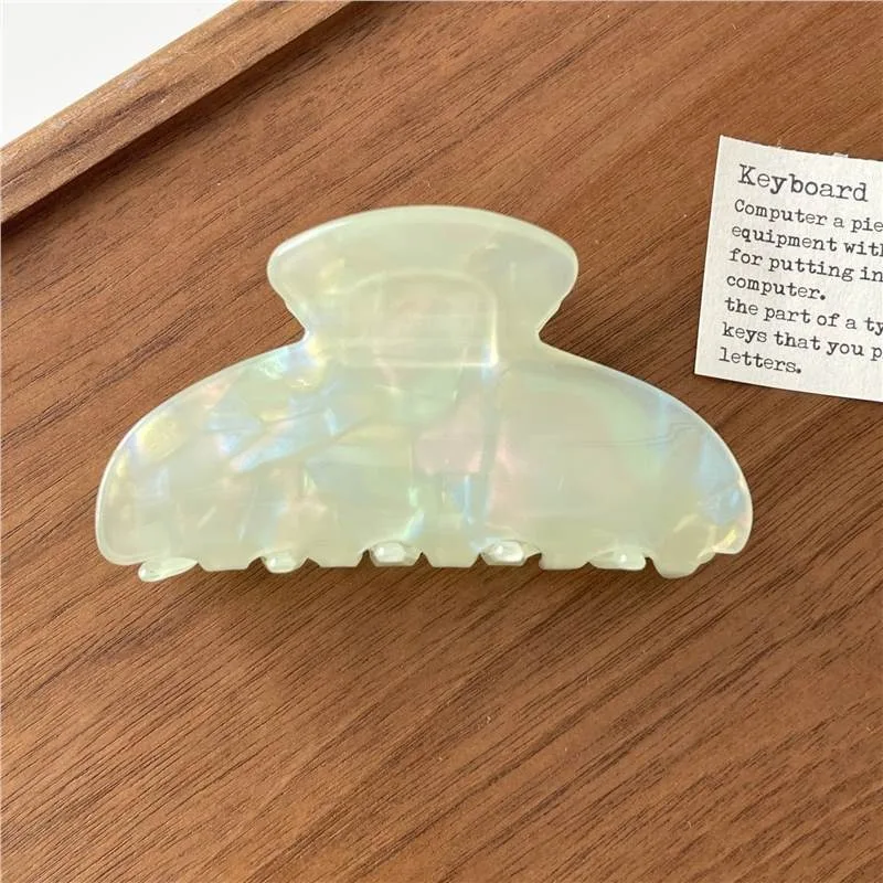 Step into a world of sophisticated style with this luxurious French tortoise shell hair claw. Crafted from glossy, marbled plastic, this accessory captures the timeless charm of mother-of-pearl with a modern touch. Measuring approximately 8.2 centimeters, its oval shape and scalloped edges provide a secure grip while adding a touch of elegance to your hairstyle. Perfect for all seasons, this versatile piece complements both casual and formal outfits effortlessly. Its shiny finish and pastel color options—from soft blues and pinks to gentle greens and yellows—make it an ideal choice for fashion-conscious women. Whether you're dressing up for an event or enhancing everyday looks, this hair claw combines decorative appeal with practical functionality. Enjoy effortless styling with a luxurious flair.