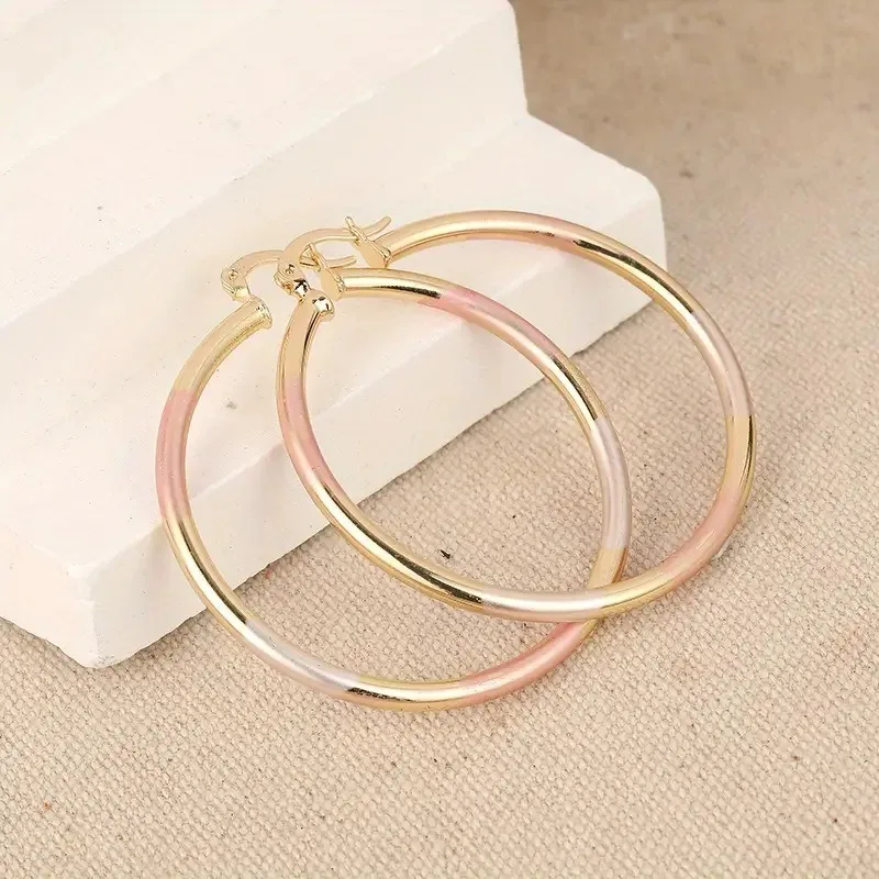 - Sleek circular hoops crafted from zinc alloy with polished, reflective metal finish for a luxurious look.