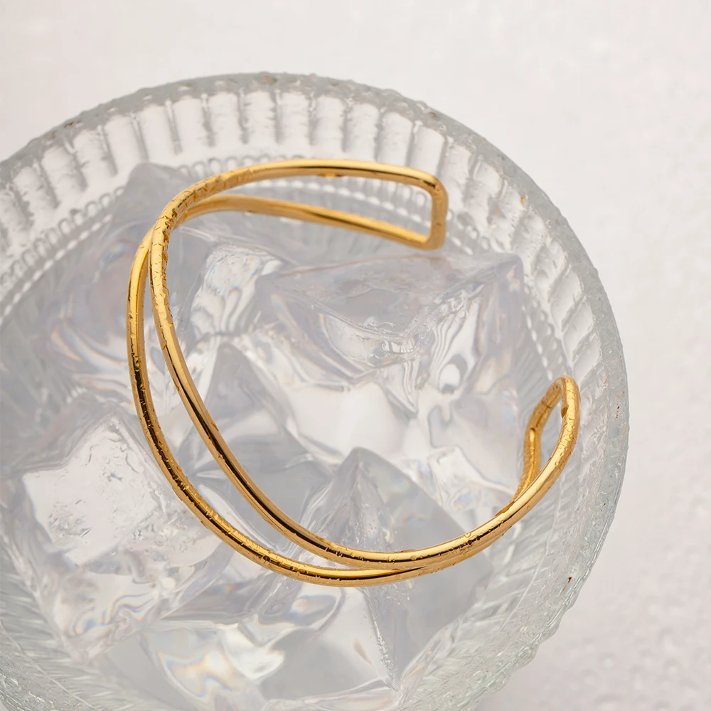 Elegant Gold Double Layer Stainless Steel Cuff Bracelet