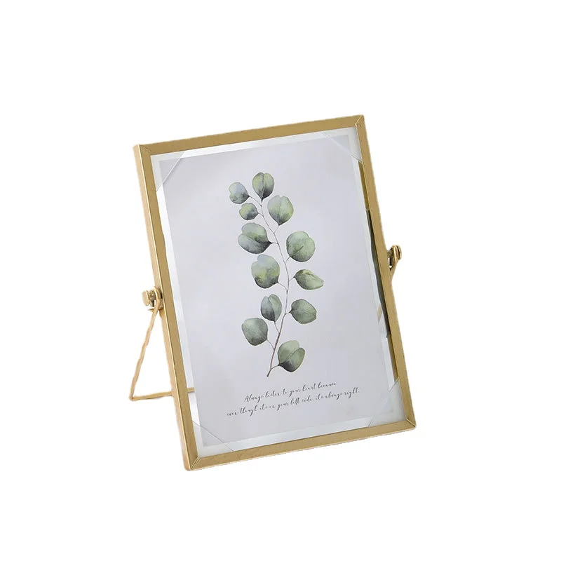 Elevate your home décor with these elegant freestanding rectangular photo frames crafted from transparent glass and durable metal. Available in three sizes—10.2 x 15.3 cm (4 x 6″), 12.7 x 17.8 cm (5 x 7″), and 15.2 x 20.3 cm (6 x 8″)—each features a sleek, minimalist design with a polished gold-colored metal border and a sturdy supporting base. The open-sided construction showcases your favorite photos with a modern sophisticated look, perfect for displaying memories in any setting. Manual measurements may vary slightly, so please refer to actual product dimensions for precise fitting.