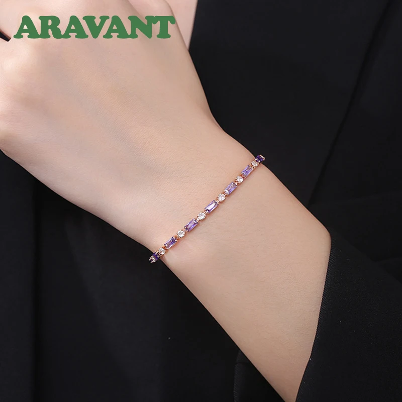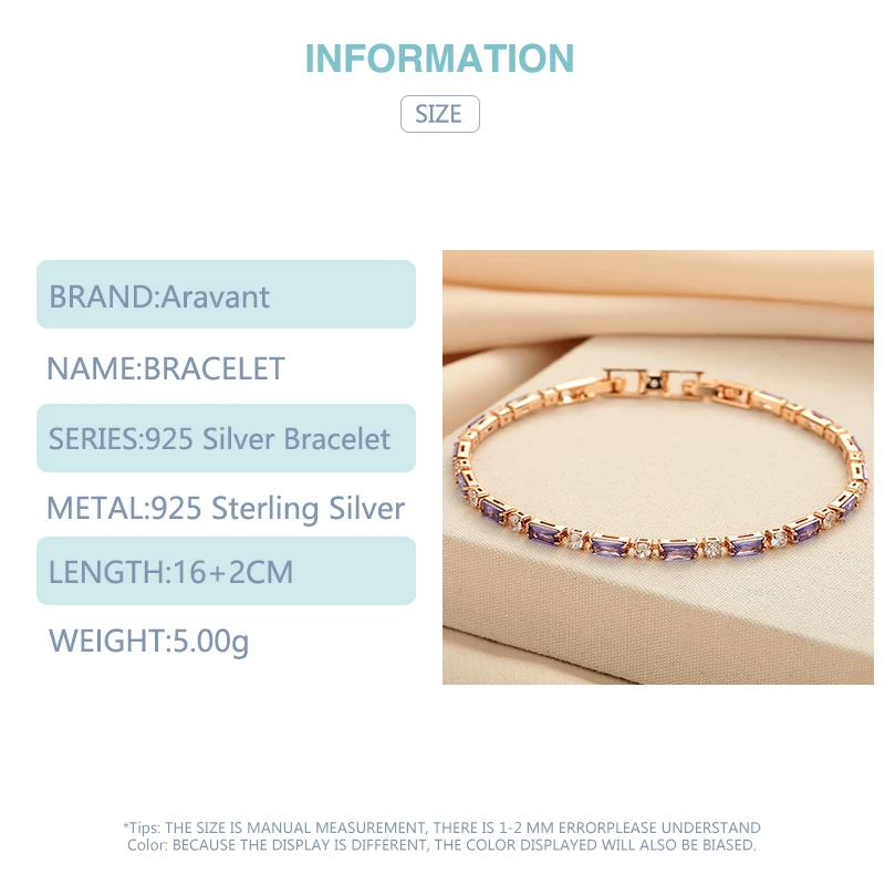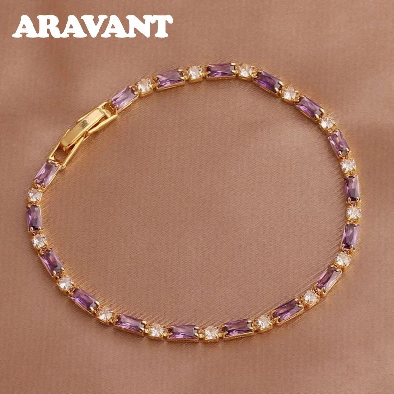 Experience timeless sophistication with this stunning women’s bracelet, meticulously crafted from sterling silver with a luminous 18K gold plating. Its sleek chain features interconnected rectangular links, creating a modern geometric pattern perfect for contemporary fashion. The 16+2cm adjustable length ensures a comfortable fit for all wrist sizes. Adorned with rich purple amethyst stones cut in baguette or emerald styles, the bracelet exudes regal elegance. Small clear stones provide delicate sparkle, enhancing its overall brilliance. Lightweight at just 5 grams, it’s suitable for all-day wear and special occasions. Its anti-allergy finish makes it perfect for sensitive skin. Whether for a romantic engagement, a memorable anniversary, or a luxurious gift, this piece combines modern design with refined craftsmanship to elevate your style effortlessly.
