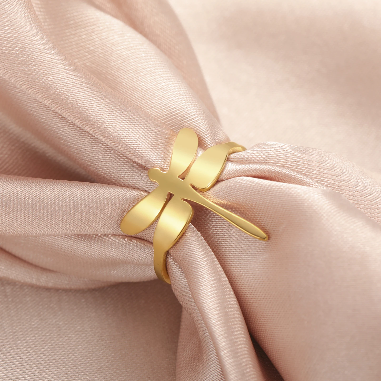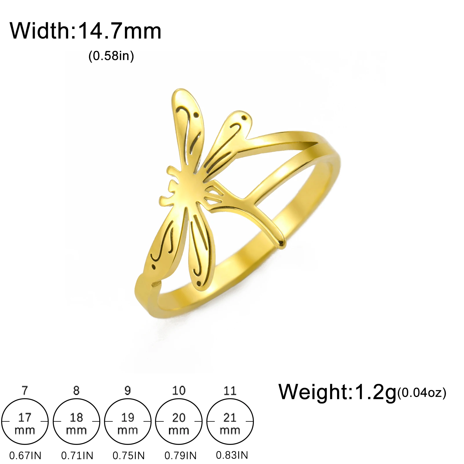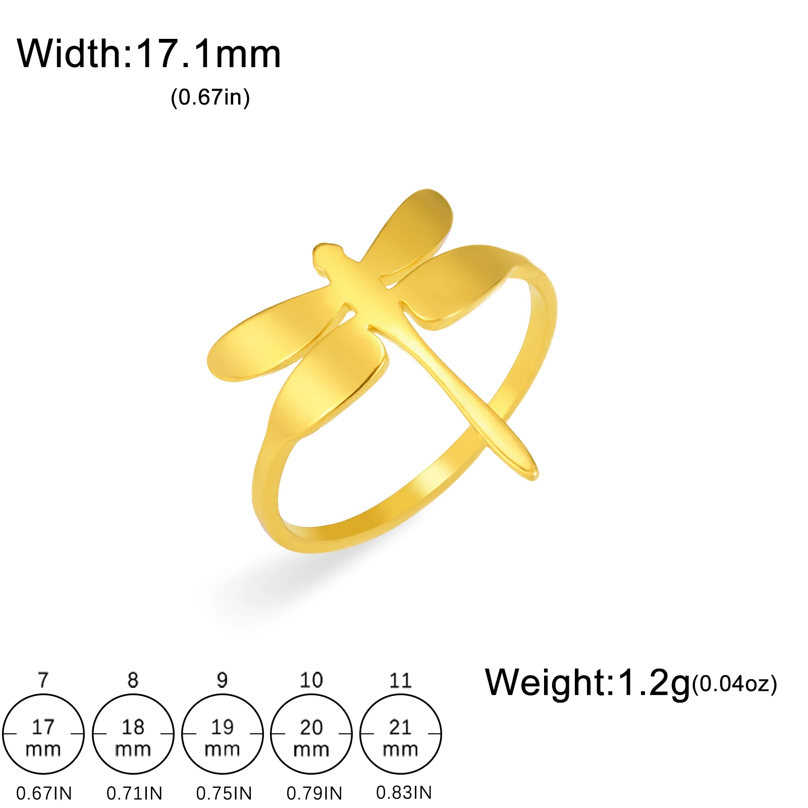 Imagine effortlessly adding a touch of sophistication to your everyday look with this stunning minimalist dragonfly ring. Crafted from durable stainless steel and featuring an 18k gold plating, it shines with a luxurious gold hue or sleek steel finish. The delicate openwork design of the dragonfly, with elongated, smoothly outlined wings, offers a modern yet feminine aesthetic that complements any outfit. Its lightweight, thin band ensures comfort while highlighting fine craftsmanship. Perfect for daily wear or special moments, this versatile piece enhances your style even when worn alone or stacked with other jewelry. Its resilient materials guarantee long-lasting radiance and resistance to tarnish, making it a reliable and beautiful addition to your jewelry collection.