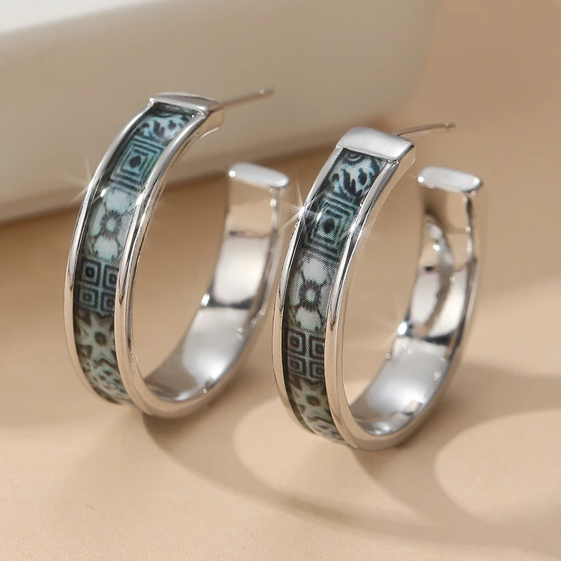 Keys features of the this floral pattern hoop earrings
