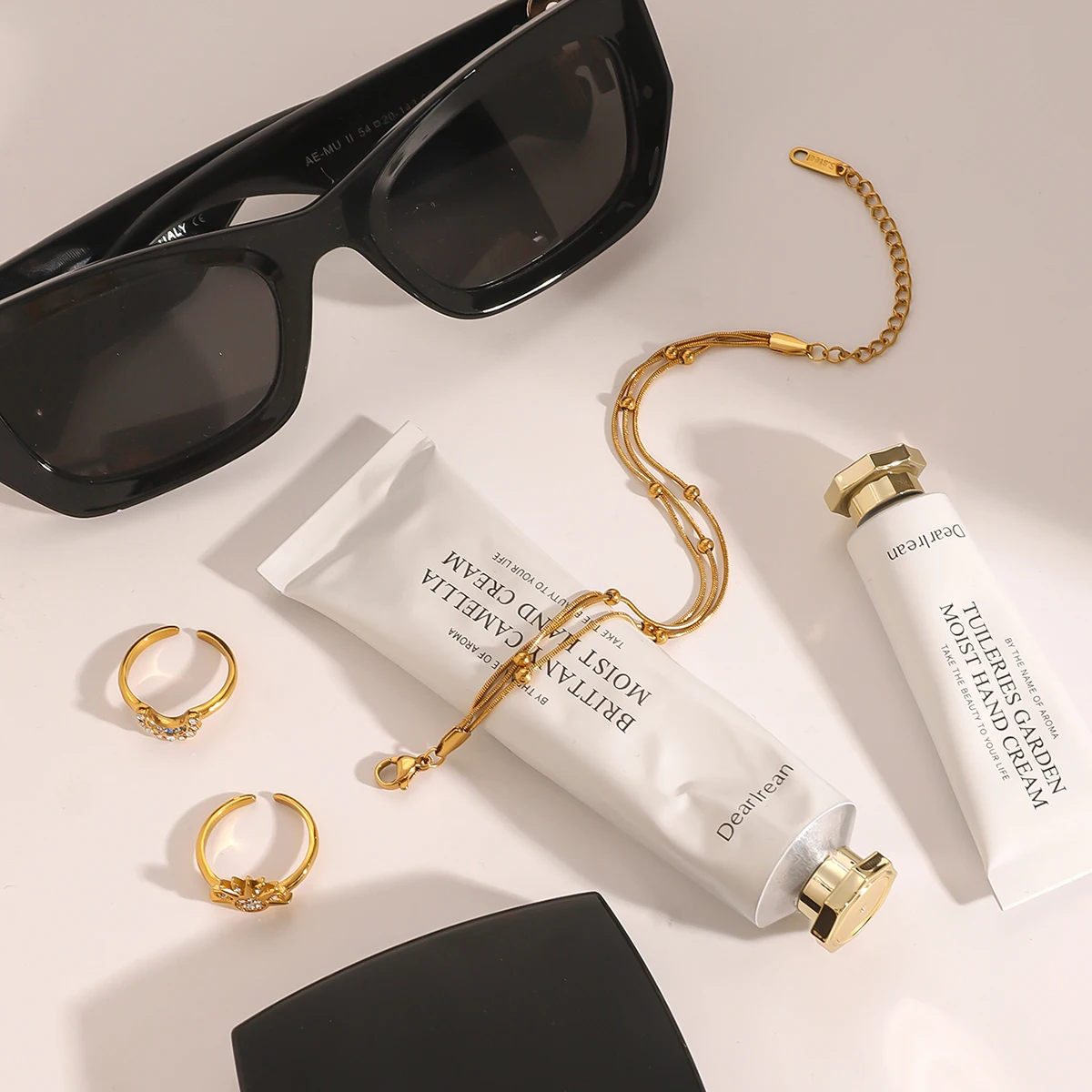 Enhance your wardrobe effortlessly with this elegant gold-tone stainless steel chain bracelet. Its durable, stylish design combines minimalist beauty with long-lasting quality, making it an essential piece for your collection. Whether you wear it alone or stack it with other jewelry, this bracelet adds a touch of sophistication. Enjoy the comfort of adjustable fit and the confidence knowing it’s waterproof and hypoallergenic. Make your everyday extraordinary by choosing this versatile, durable accessory that keeps shining beautifully. Don't miss out on this perfect blend of elegance and practicality—order now and elevate your style!