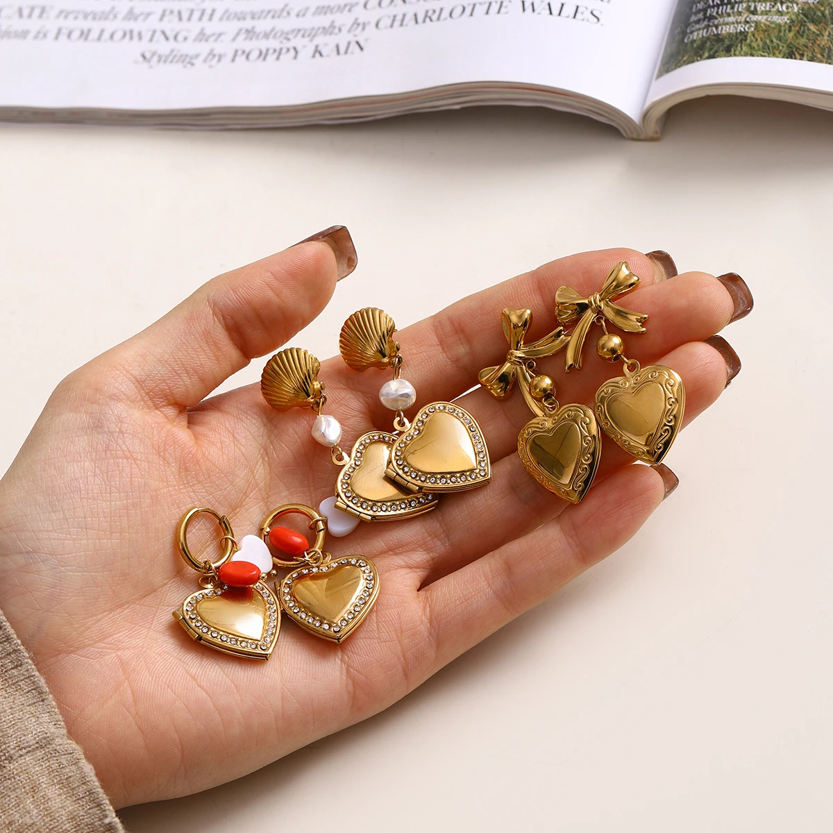 - Includes white rhinestones and shell stone pendants, blending trendy, elegant elements in heart-shaped designs perfect for stylish women.