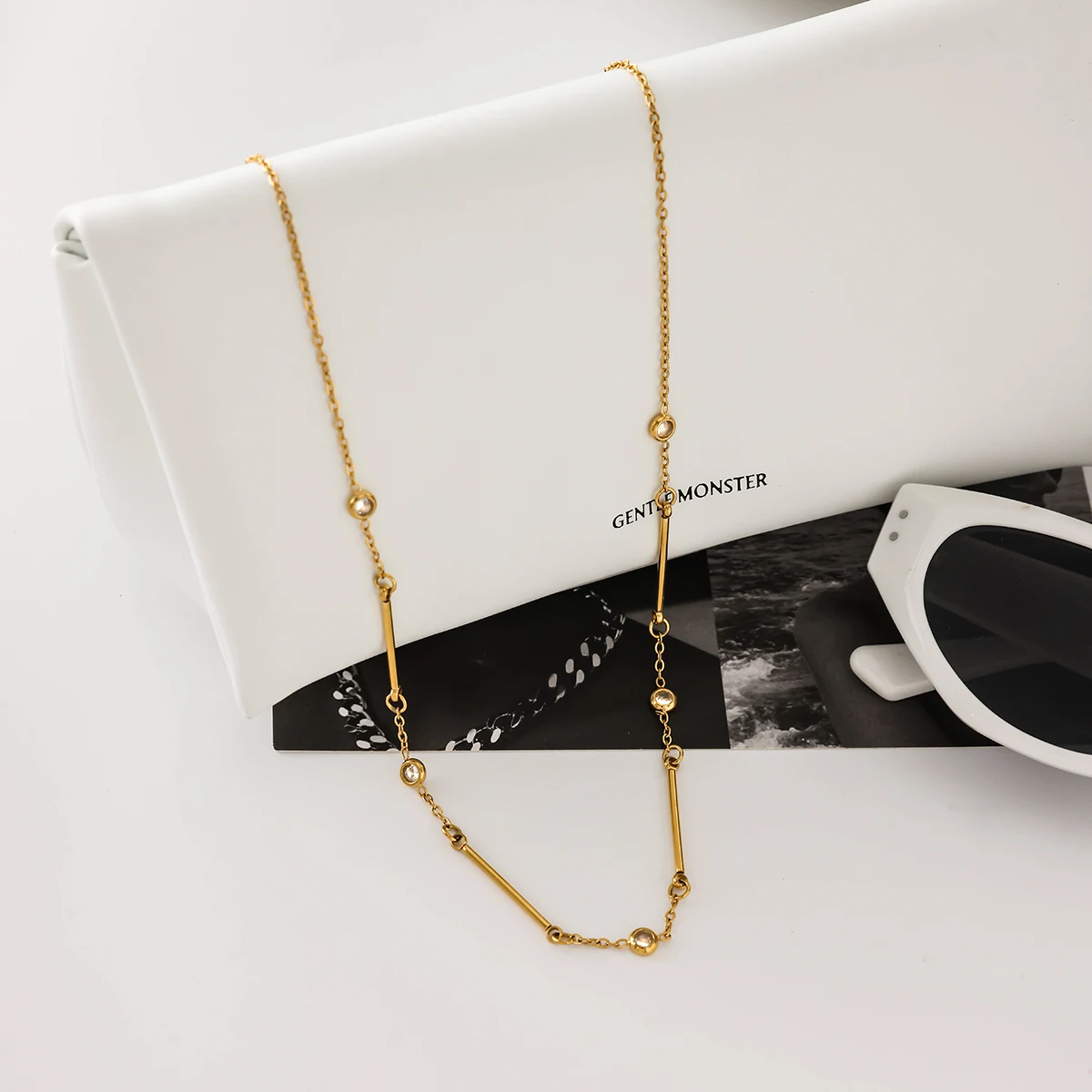 Enhance your style with this stylish stainless steel women’s necklace featuring a sleek round zircon design in a glamorous gold color. The stackable link chain style combines bold, elongated oval links with delicate, zircon-adorned layers, creating a modern and fashionable layered look perfect for party occasions. Crafted from durable stainless steel and REACH certified for safety, this trendy accessory is compatible with all outfits and skin types. Its versatile design and sparkling zircon accents offer a chic, refined appearance that elevates any neckline, making it an ideal addition to your jewelry collection for a confident and sophisticated look.