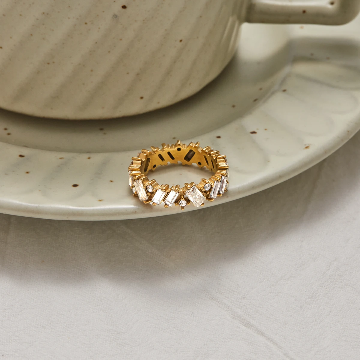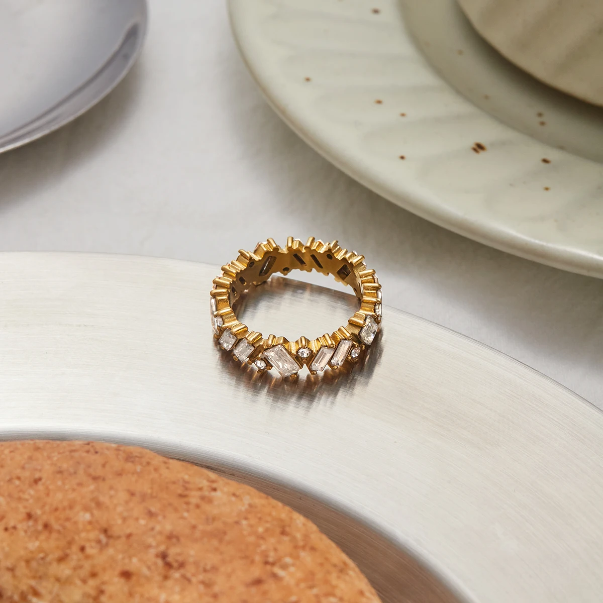 Enhance your jewelry collection with this exquisite gold stainless steel zircon ring. Perfect for special occasions or daily elegance, it promises an eye-catching touch to any outfit. Don't miss the chance to make this unique piece yours—experience the blend of durability, style, and brilliance that reflects your refined taste. Elevate your accessories today and enjoy a versatile, fashionable look that complements your personality and flair effortlessly.