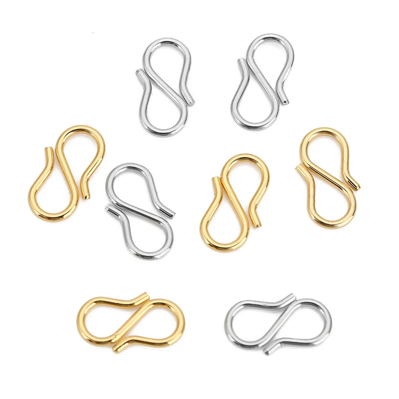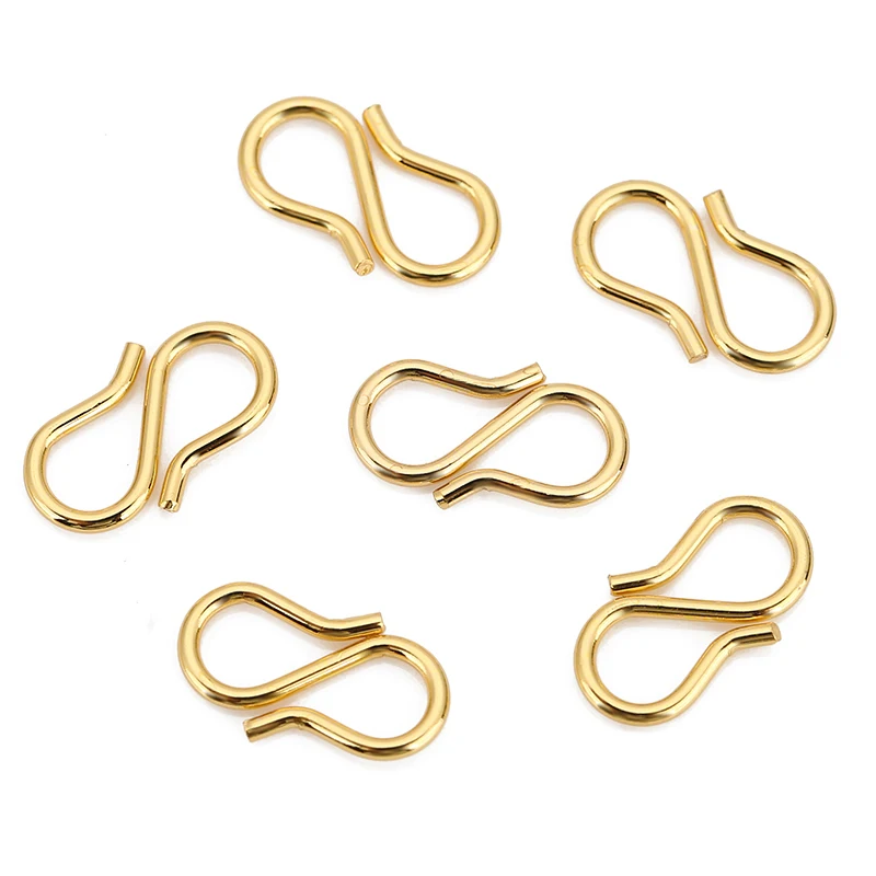 Enhance your jewelry creations with this set of 30-50 stainless steel S-shaped clasps, each measuring 13x7mm, crafted from durable 316L stainless steel and plated with high-quality 18k gold for a luxurious finish. Designed for strength and ease of use, these sleek, polished clasps are perfect for necklaces and bracelets, providing a secure closure while adding a refined touch. Their minimalist S-shape complements various jewelry styles, making them ideal for DIY enthusiasts and professional jewelers alike. Packaged in convenient OP plastic bags, these versatile components ensure a seamless crafting experience, elevating your custom jewelry projects with durability and elegance.