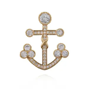 Elegant Gold-Tone Anchor Brooch with Rhinestones