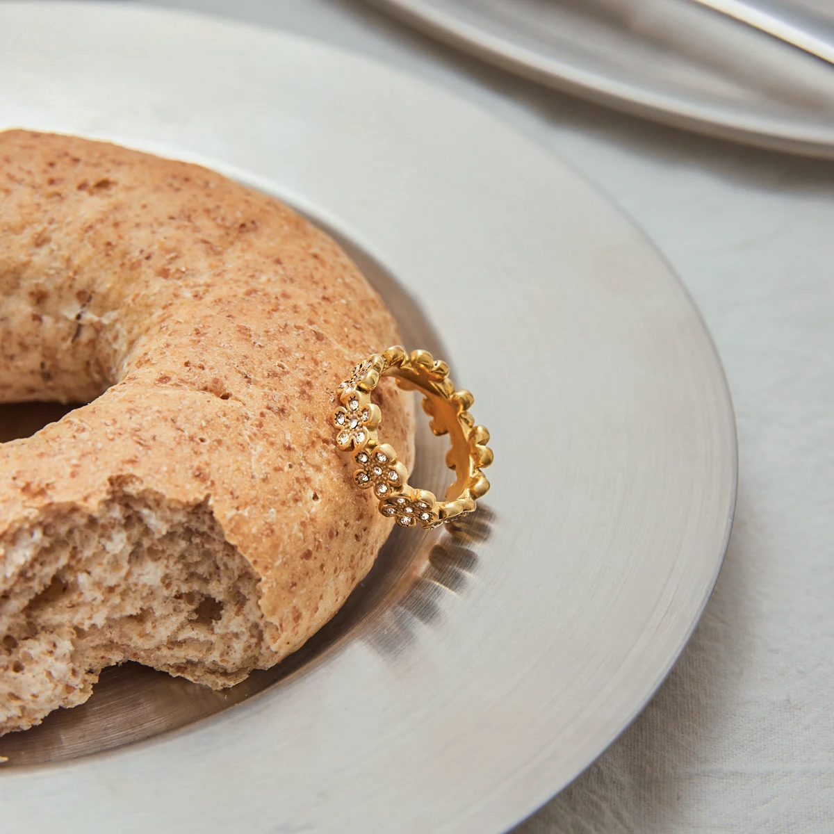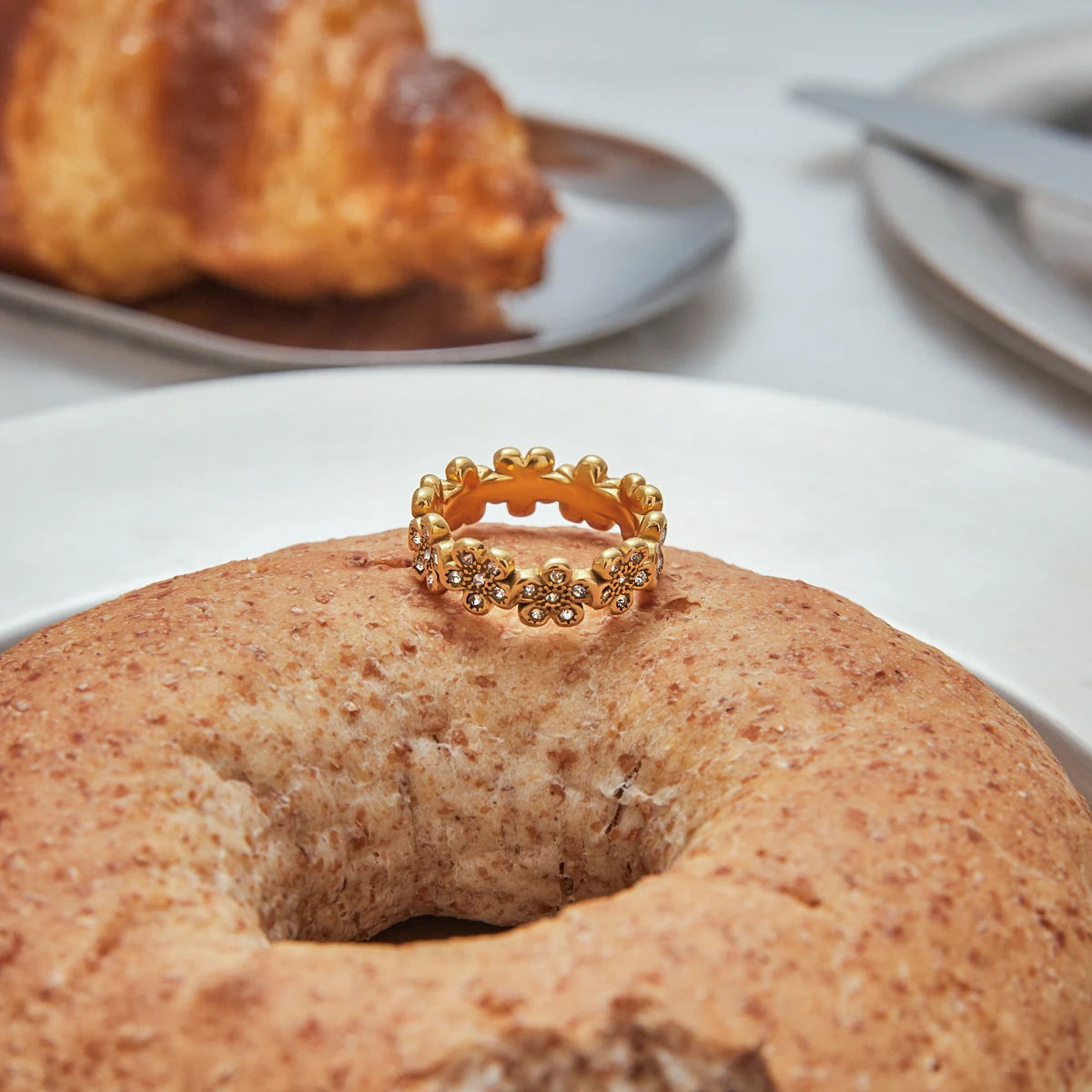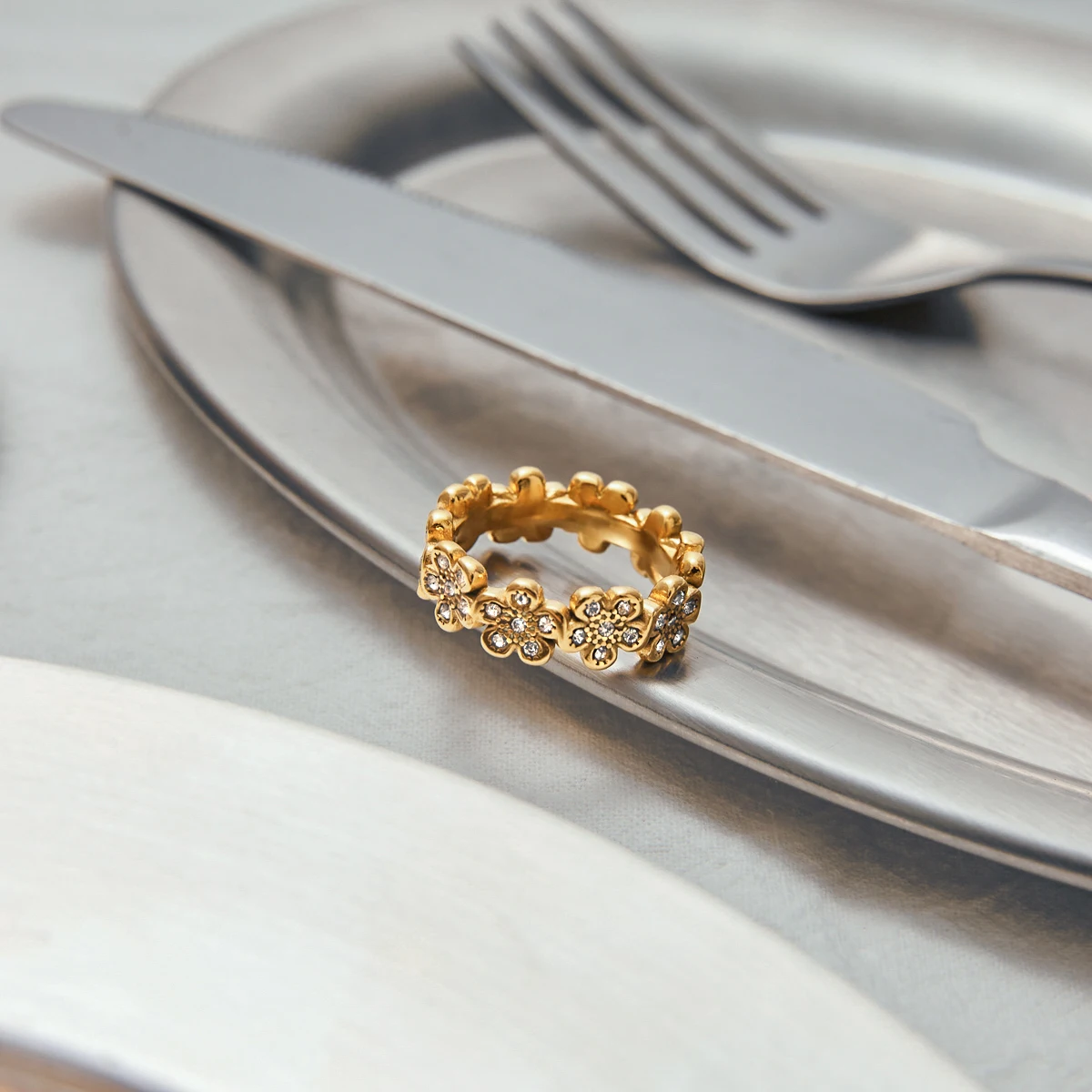 Elegant Gold-Tone Stainless Steel Floral Ring