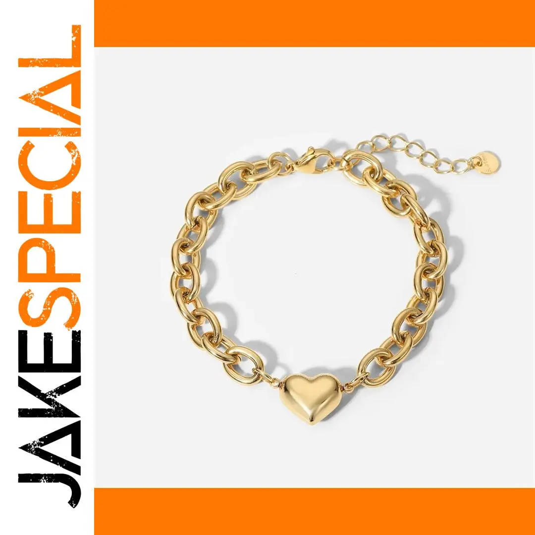 Elegant Gold-Tone Stainless Steel Heart Bracelet