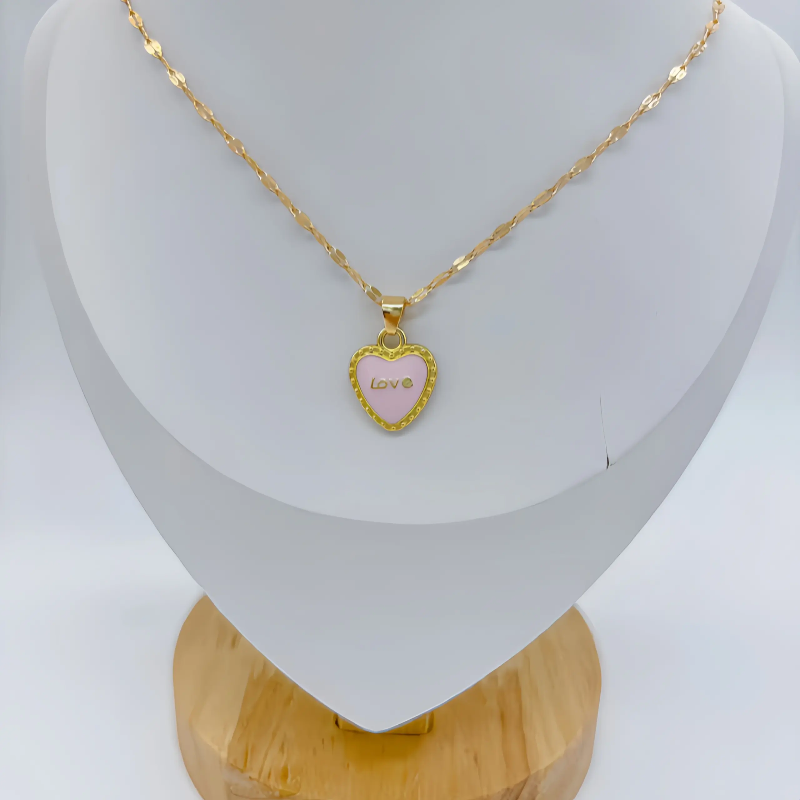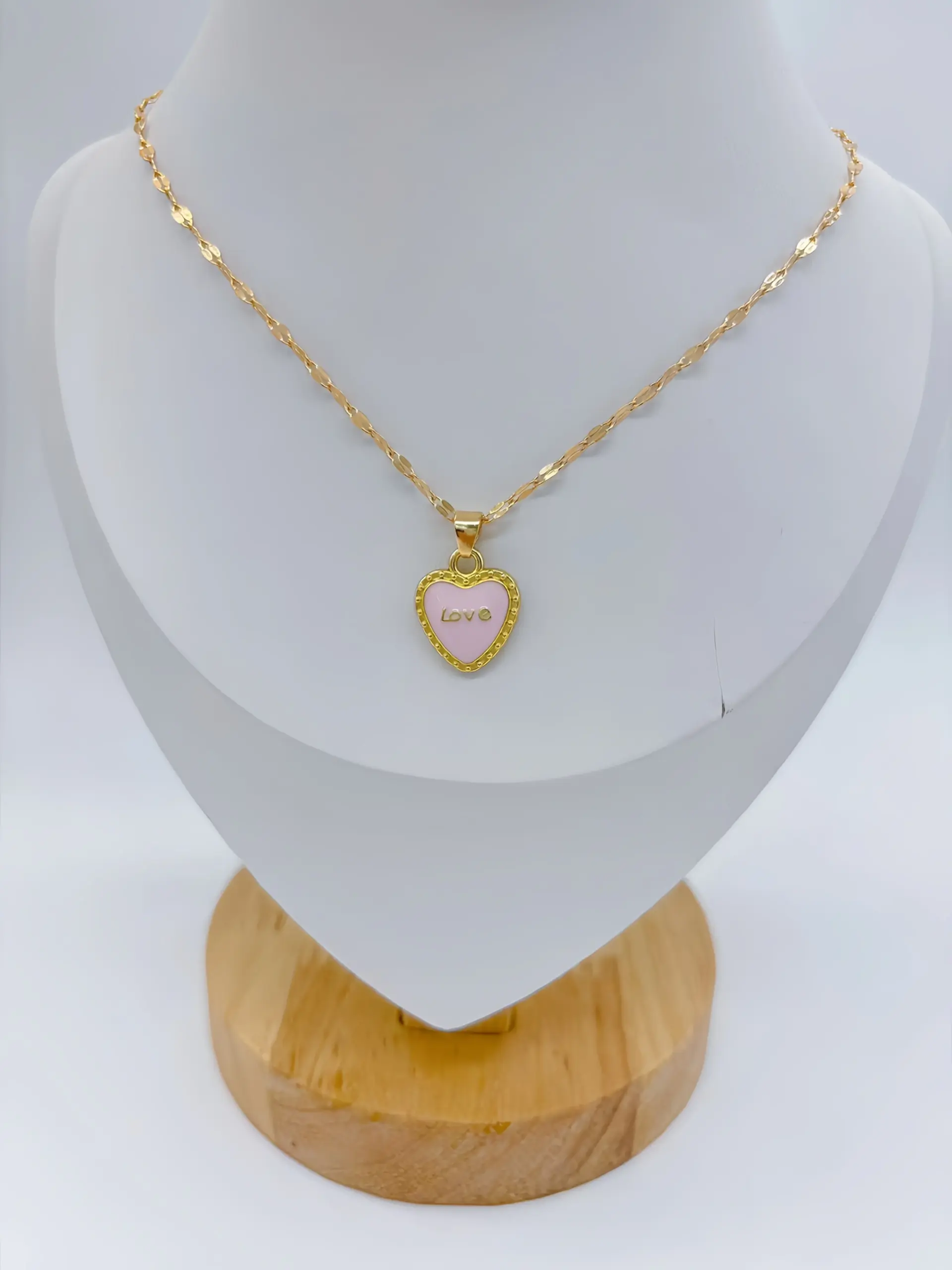- The 45 cm chain consists of small oval links in a matching gold finish, offering a versatile length compatible with all outfit styles.