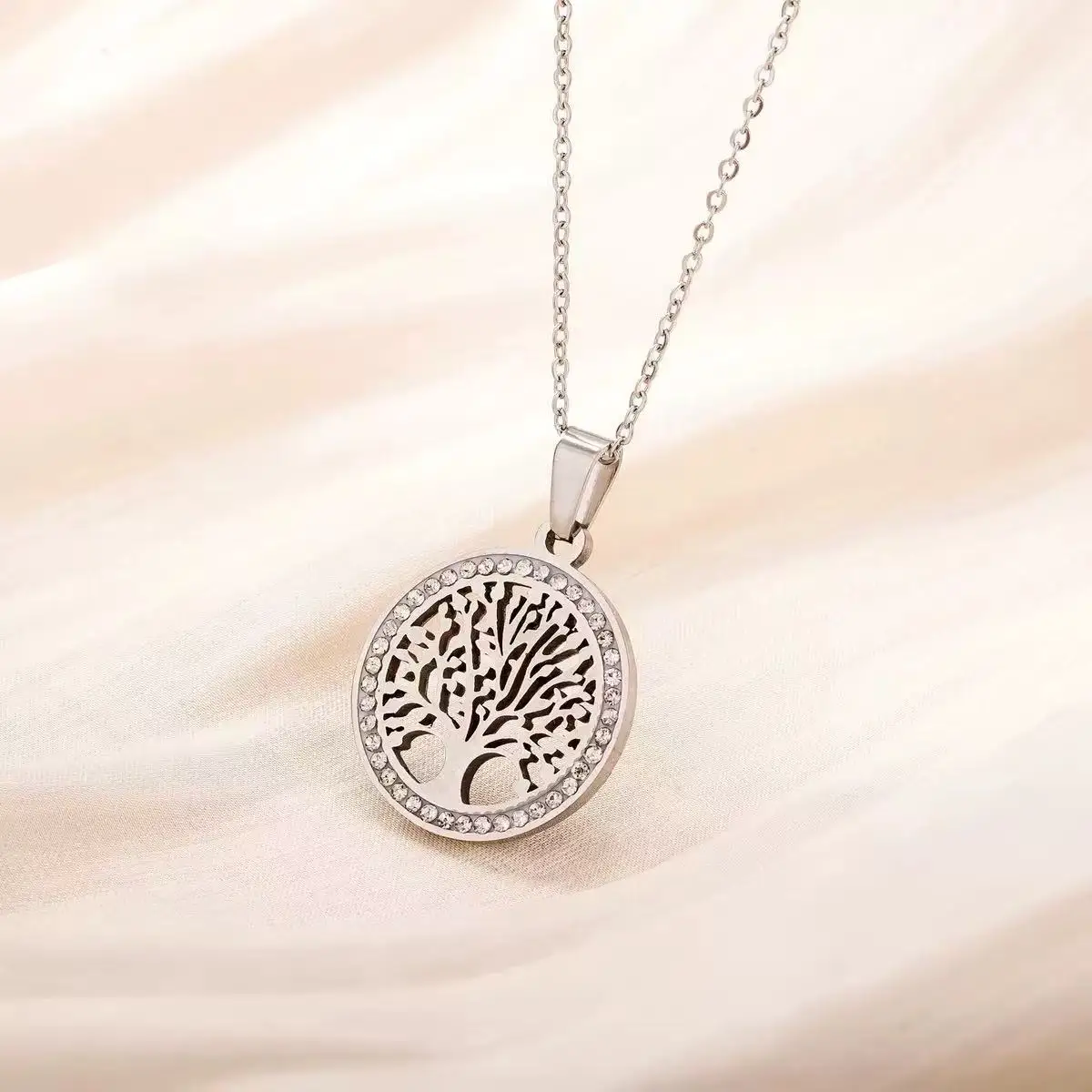 Imagine elevating your style effortlessly with this stunning Tree of Life Necklace designed for women. Crafted from zinc alloy and finished in a radiant gold color, this pendant exudes elegance. The round shape features a detailed tree silhouette, symbolizing growth and harmony, encased in a smooth frame adorned with sparkling rhinestones, adding a touch of glamour. Its 45 cm chain offers a comfortable fit for various necklines, making it perfect for parties, special events, or everyday wear. Lightweight yet durable, this necklace is a versatile accessory that enhances any outfit. Its timeless design makes it an ideal gift for loved ones or a special treat for yourself, blending fashion, nature-inspired motifs, and sophisticated sparkle seamlessly.